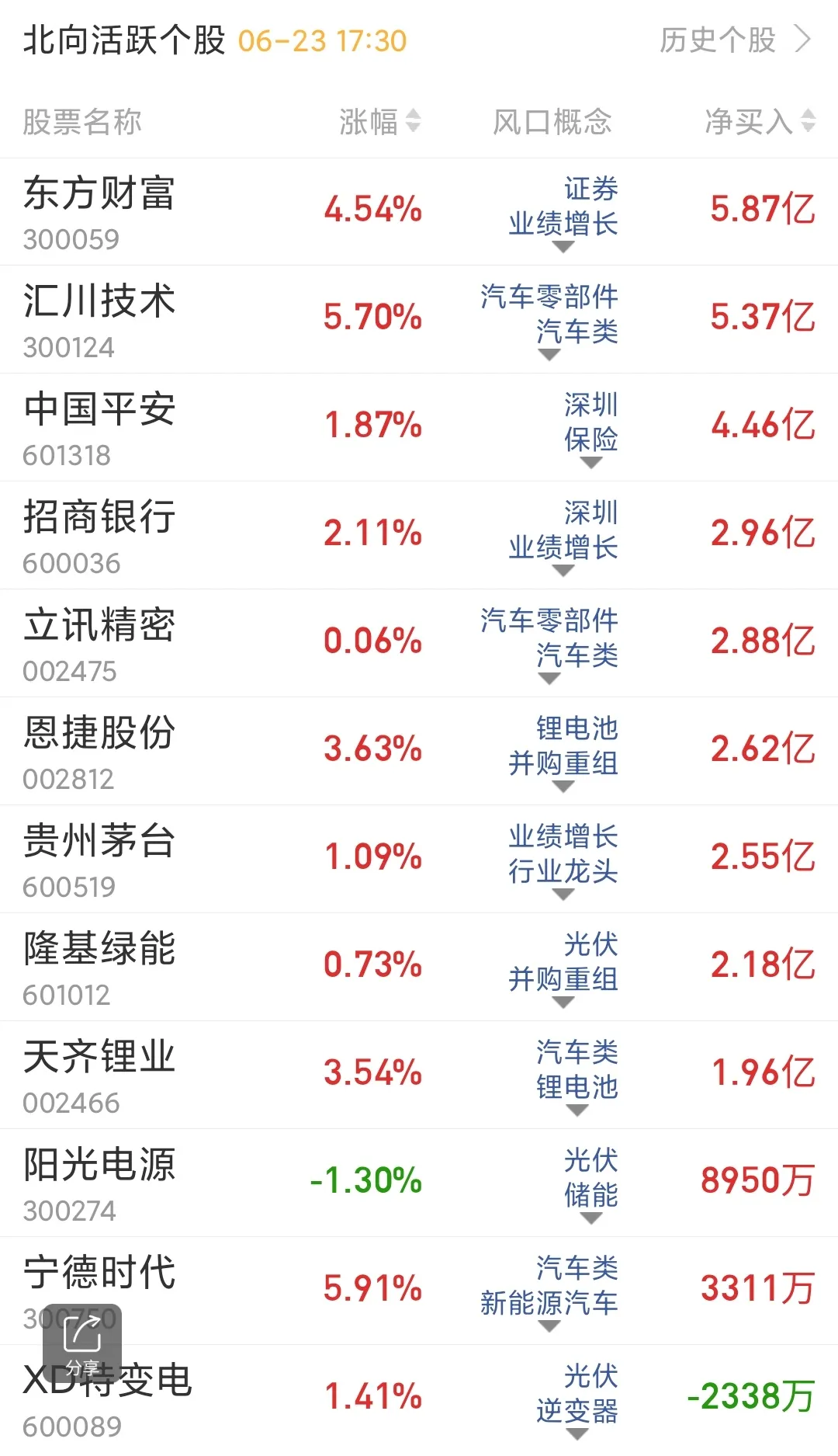 金融股票市场涨停分享