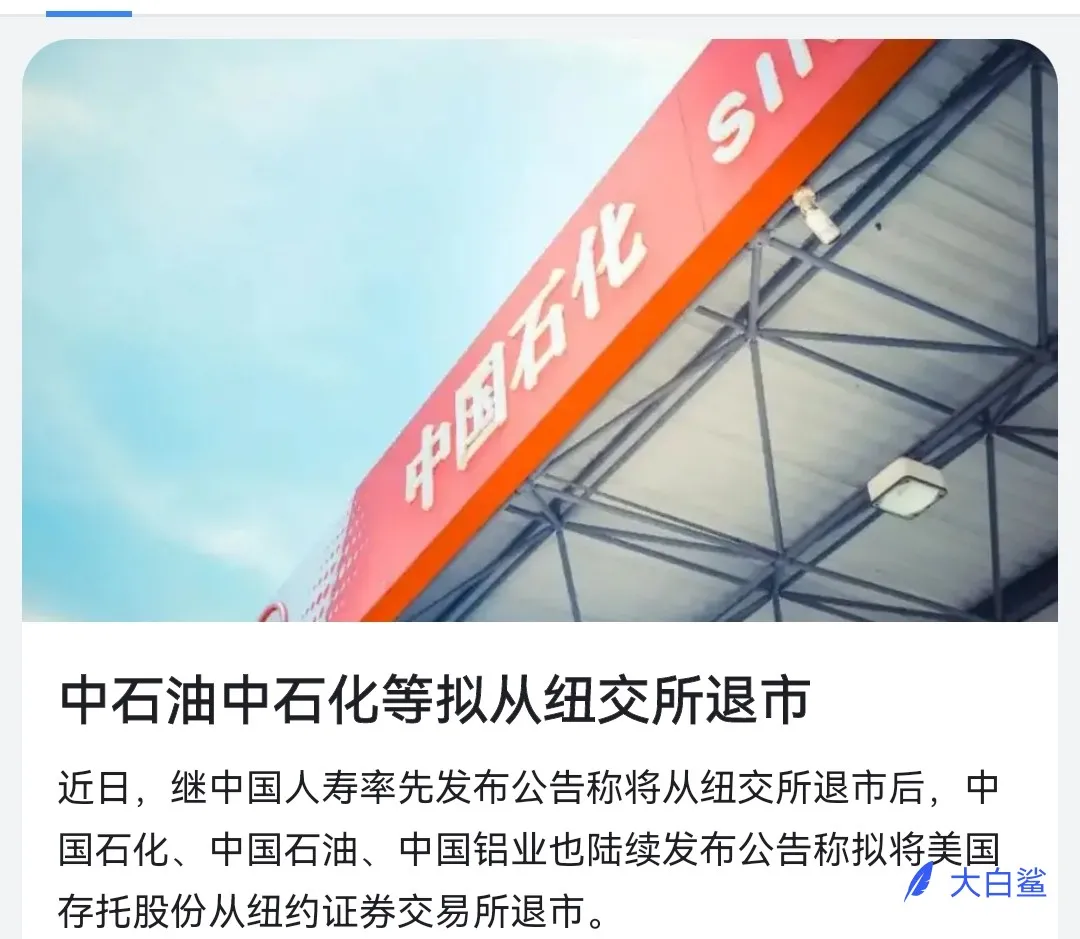 昨天中石油、中石化、中国人寿等五家公司主动从纽约交易所退市的消息,引起轩然大波…