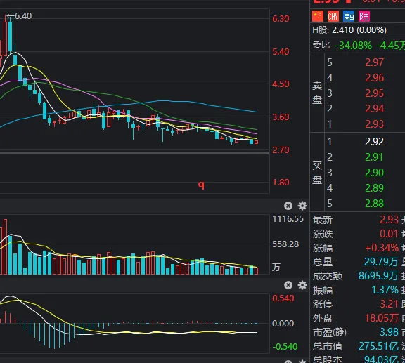 2元垃圾股,每股净资产高达6.35元,半年报每股收益0.18元,现股价2.9元,自去年高点6.4元,不到一年跌到现在又跌了70%不见,跌得实在是太快,太狠!去年买了这股的股民,每天都是以泪洗面,度日如年。