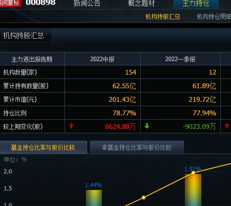 半年报每股收益0.18元,因为业绩好,每股净资产高,股价又不到3元,便吸引一大批的机构蜂拥而至,半年报资料显示持股机构由一季度的12家增加到154家。