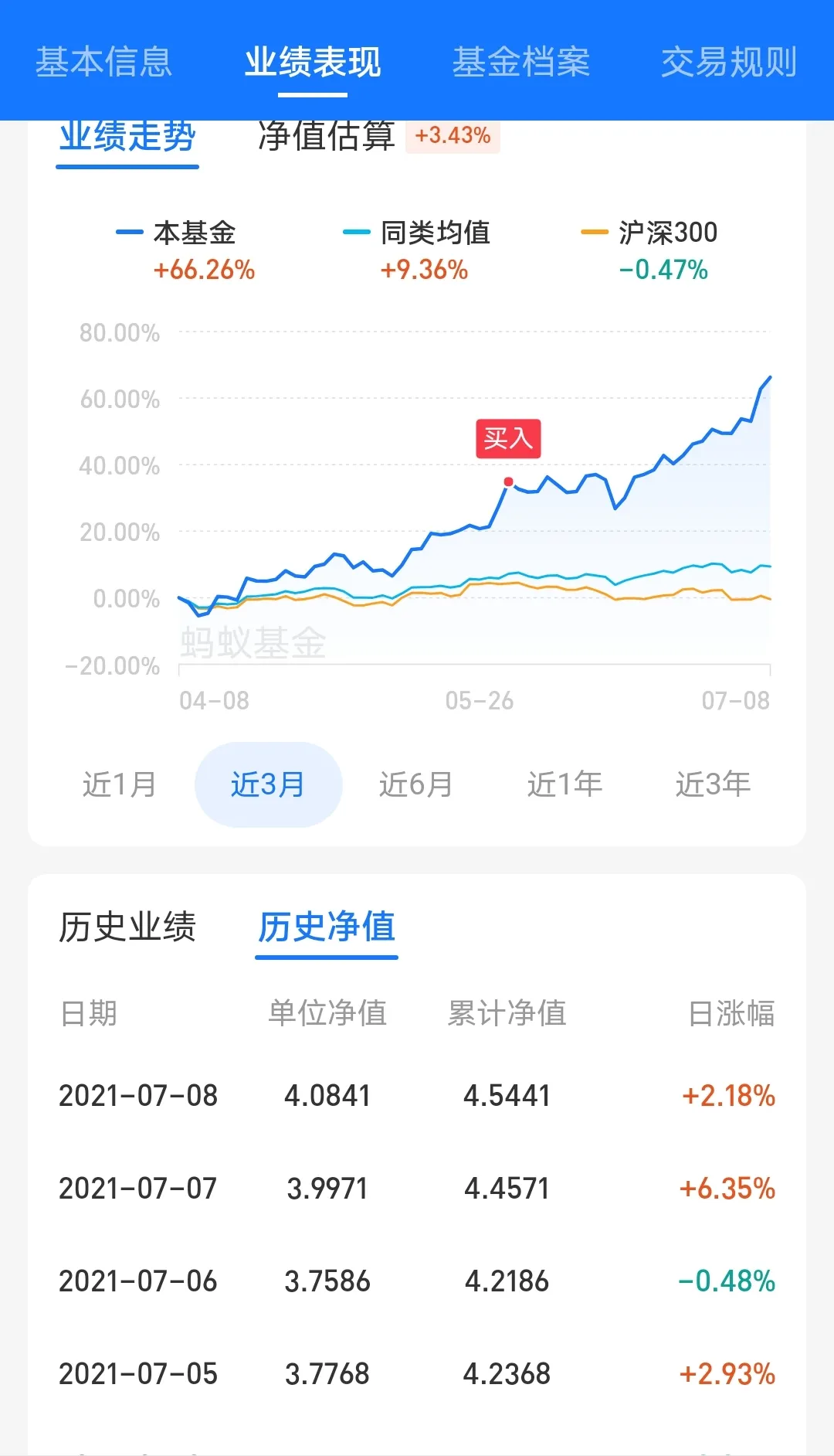 可是最近涨的太猛了,自己也有点觉得不可思议。但也不能把基金当做股票来玩啊!只能被迫逢高减仓。真是吓S胆大的、饿S胆小的。