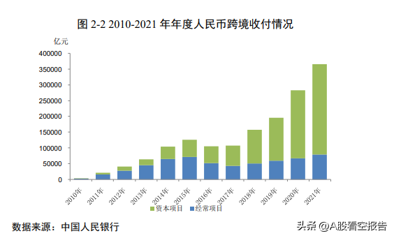 1、2021年,人民币跨境收付金额合计为36.61万亿元,同比增长29%。