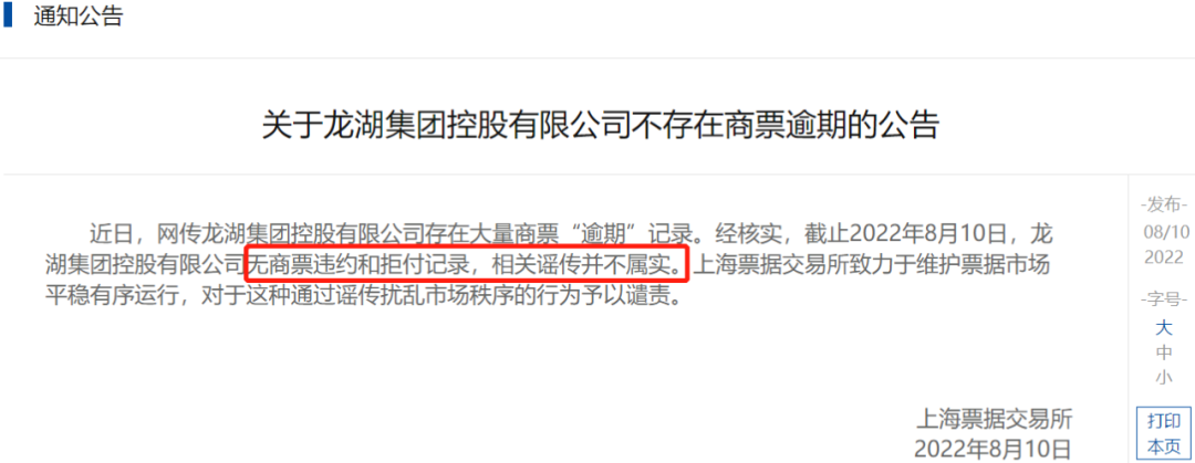 同时,上海票据交易所也在昨晚发布《关于龙湖集团控股有限公司不存在商票逾期的公告》,表示龙湖无商票违约和拒付记录。