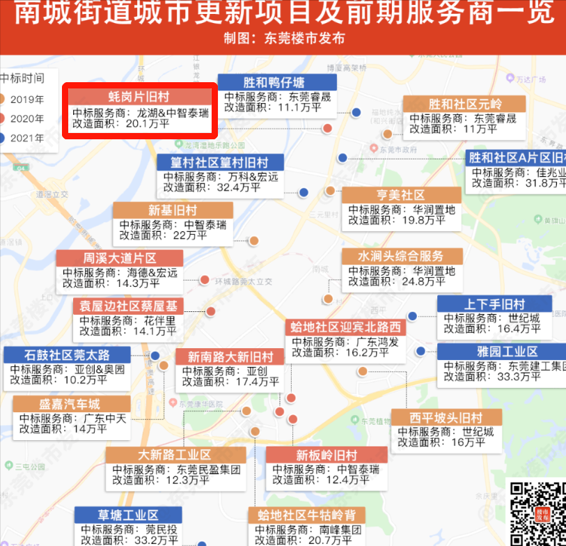 至于在城市更新方面,龙湖在2020年5月,拿下了位于南城胜和社区的蚝岗片旧村城市更新项目。
