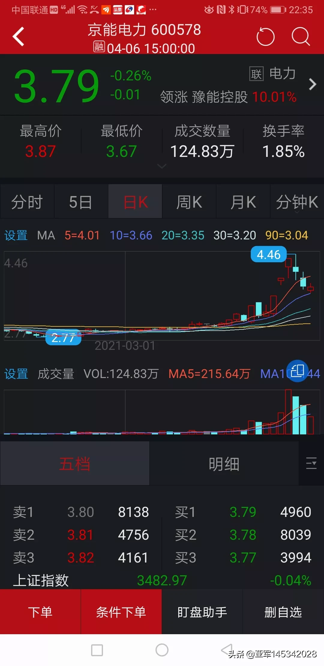 一,凡多头趋势保持全部均线之上的为超级牛(妖)股,只要不击破最上边的5日线,可继续持有侍涨但凡是明天盘中击穿5日线的应止盈出局。无仓位的不可追高。