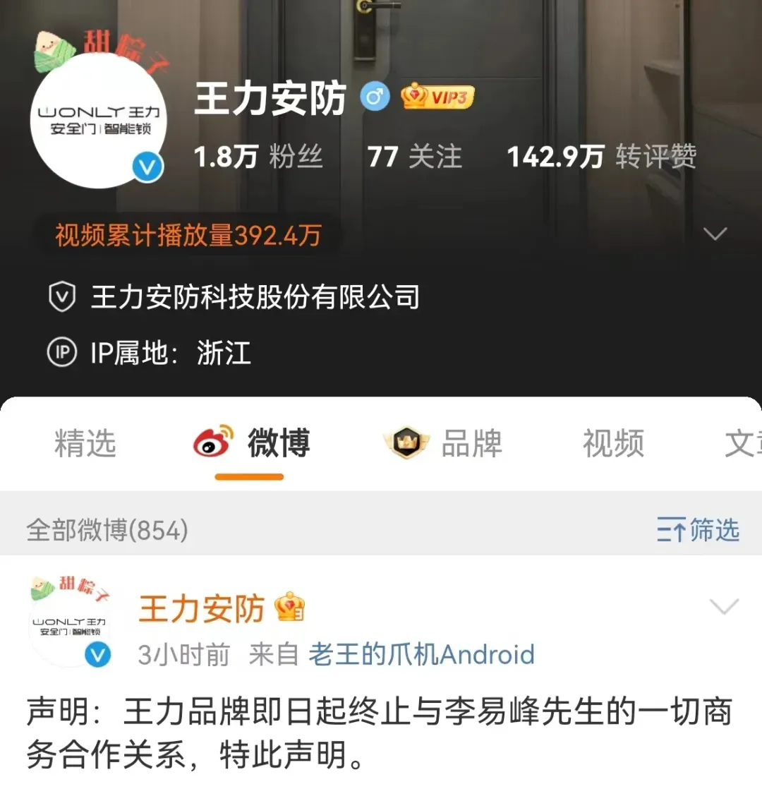 王力安防,一家市值只有42亿元的小公司,主营业务为防盗门和智能锁,原本不太为人所熟知,但昨天因为李易峰嫖娼被拘留一事上了热搜。