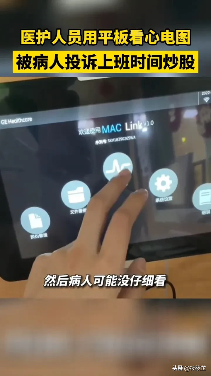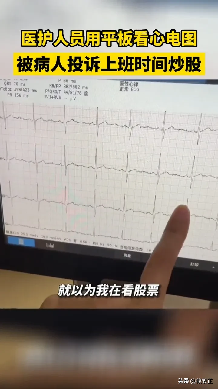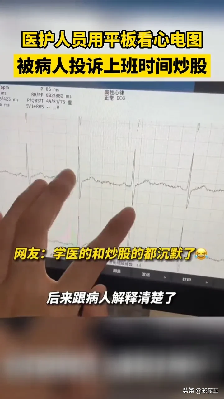 咋回事呢?原来,这位医生当时是用平板在看心电图,可能是因为心电图也是曲线图,和股票图有点像,病人就以为医生在炒股了,就问医生怎么上班时间炒股?