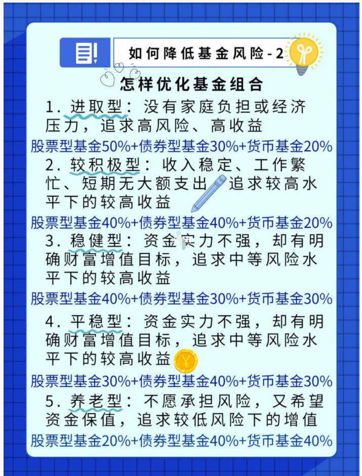 举例:我有1000元,500元买偏股型基金,300元买偏债型基金,200元存余额宝。