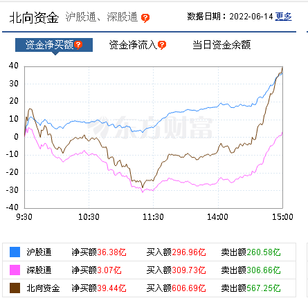 今天,北向资金净流入39.44亿元,沪股通净流入36.38亿元,深股通净流入3.07亿元。
