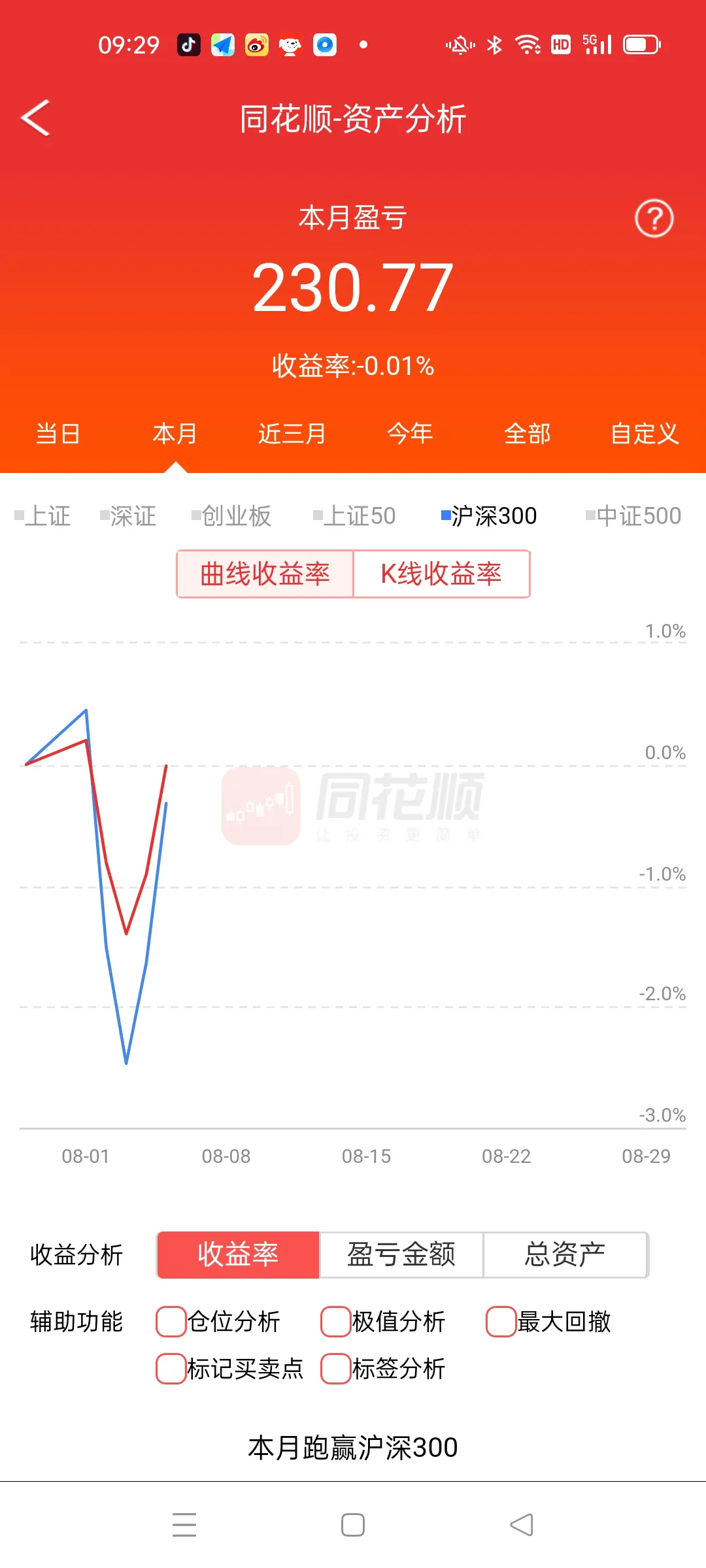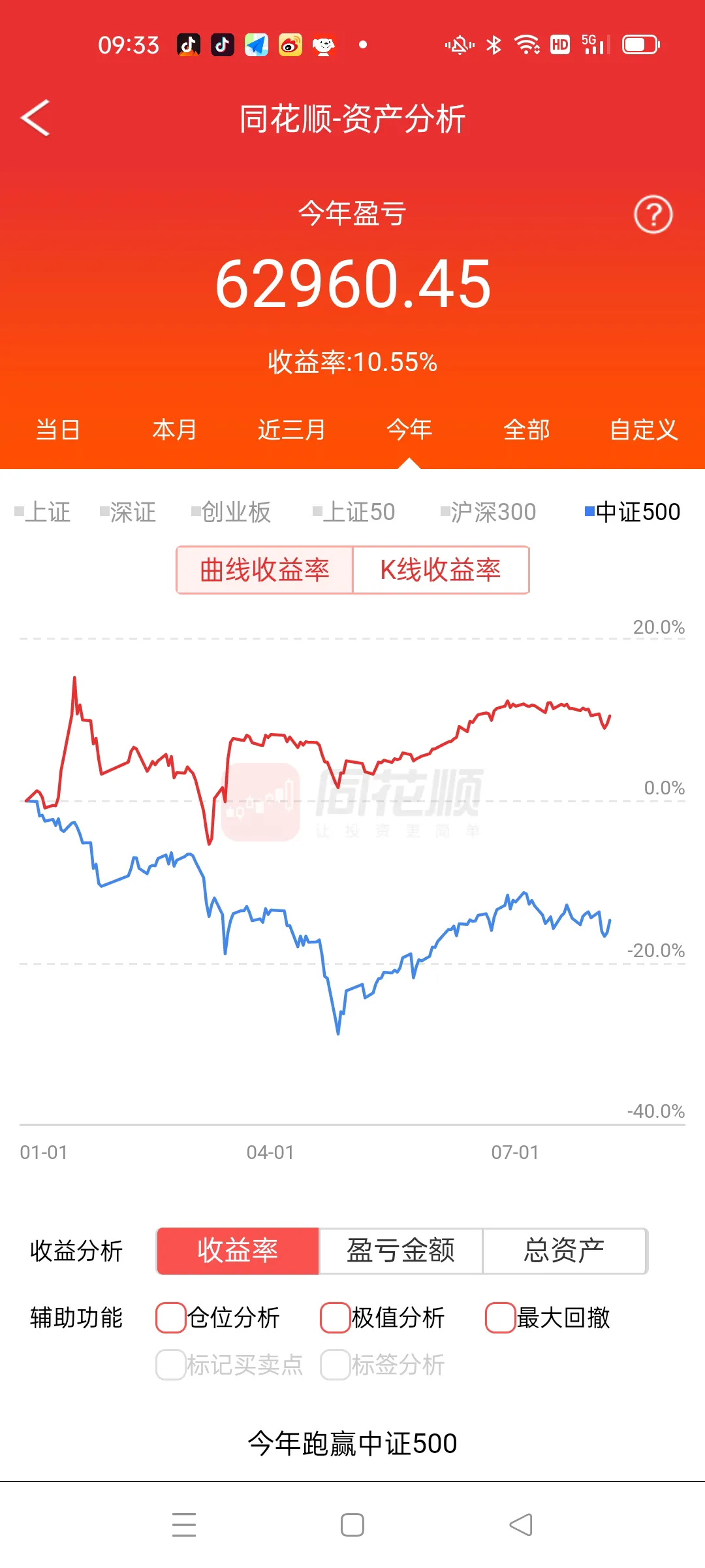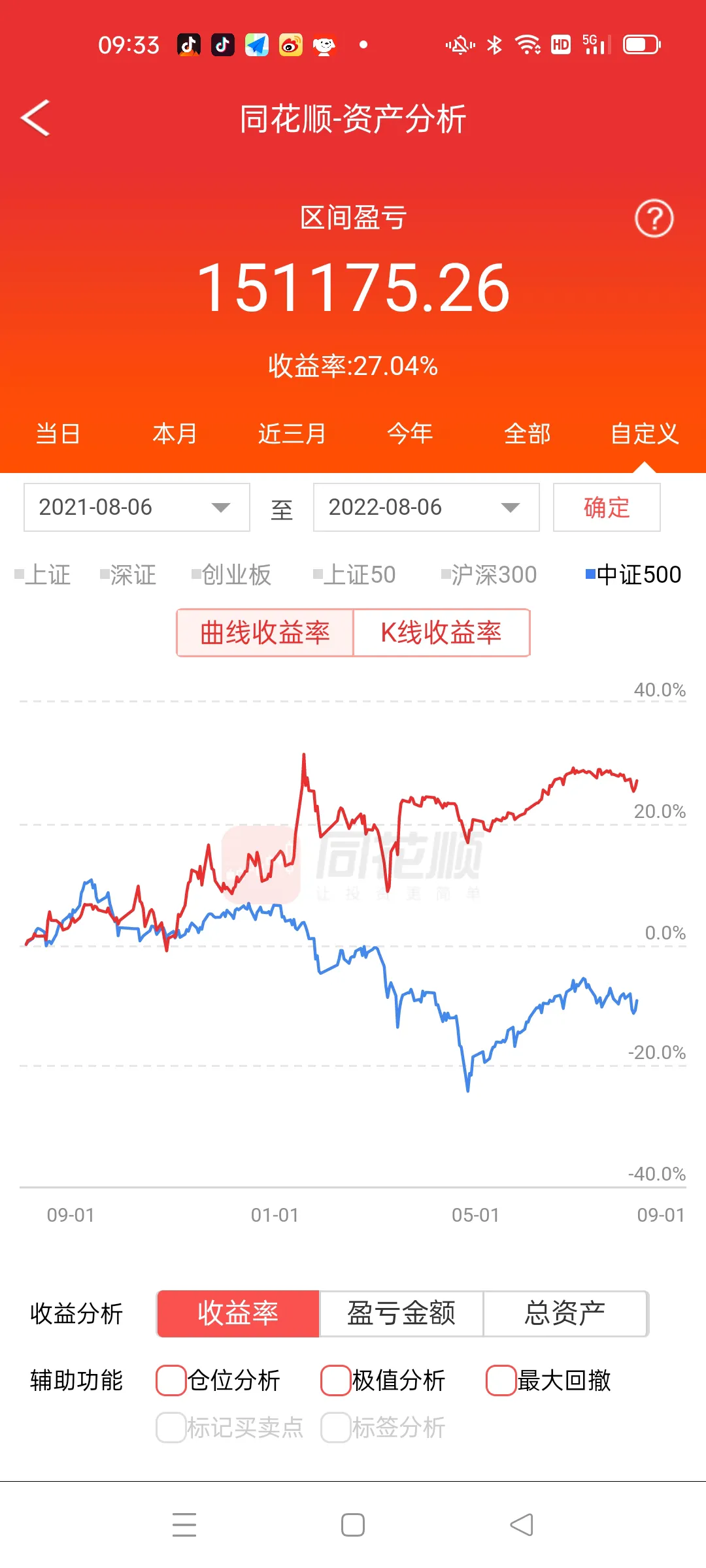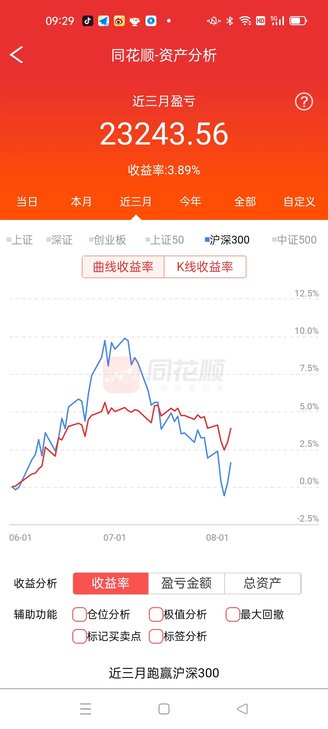 朋友们,我做股票和股指期货追求的是稳定获利,很少大起大落,这也是以前无数次大起大落后失败的顿悟,大家知道巴老先生的收益吗?很多人包括大V看不上,其实这些人都是炒作而已,他们心里更清楚根本做不到像他们自己吹牛逼一年几倍,甚至几十倍,我承认有,但是99%都是假的,所以大家在很多自媒体平台见到一年很多倍的,几乎都是骗子,如果某一只蒙对了还有可能,关键是股票比的账户收益,谁敢重仓或者满仓一只票?那些满仓一只票的都是讲课而已,洗脑用的,看看我的收益曲线,周五,我盈利0.91%,本月小赚不亏,近三月我满仓赚3.89%,对应的大盘三个月上涨1%,今年我满仓赚10.55%,对应的大盘今年大跌-11.34%,近一年我满仓赚27.04%,对应的大盘近一年下跌-7.2%,我的收益不大,没错,我承认,但是我是远远跑赢大盘,并且公开曲线,无数人见证,公开和不公开的区别大了去,每个人看看自己的曲线再说,今年股票难做的程度大家心知肚明,个股结构式上涨,一个不留神,深套不以,很多人说轻指数重个股,这句话能害死很多人,倾巢之下岂有完卵,大盘下降过程中,85%的个股随同下跌,所以把握大盘的节奏至关重要,远的不说,3424点到3358点我减仓到三层,遭到很多人的讽刺,现在那些人都不出来说我仓位轻啊,反观上周六我判断周二见时间窗口,空间博弈变盘点,果断在周三加仓10%,可是很多人在那里割肉离场,没办法,每次大级别散户割肉,恐慌就是我睁开双眼寻找机会的最好时机,应了那句话,别人在3400点兴奋的时候我谨慎,别人在3150点恐惧的时候我兴奋,无一例外,这就是股市,丛林法则,适者生存,没有技术的请退出股市,这里不是游乐场,这里凶险万分,进入股市必先武装自己,以后的路更难走,尊重市场,敬畏市场。