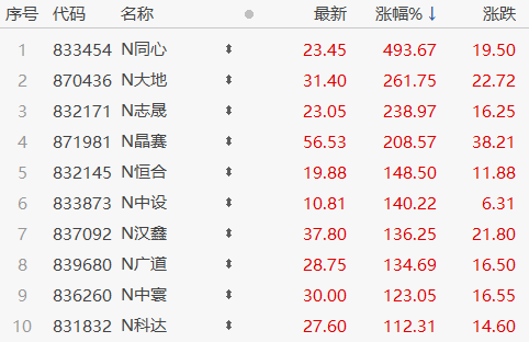 11月15日北交所首秀,10只新股大涨,其中同心传动一度涨超500%令人大呼“强强强”。截至当日收盘10只新股涨幅如图1。