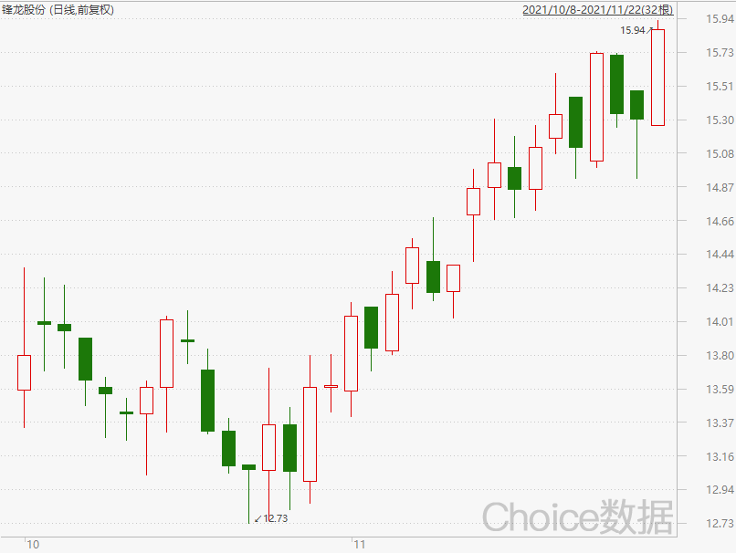 锋龙股份前三季度营收+42.88%,扣非净利润+34.17%;