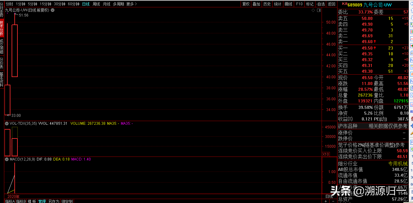 公司上市两个交易日(加上今天),午盘报收48.99元,市值352亿,动态PE310.07倍。完全是靠情怀和梦想支撑的公司,未来的成长性值得怀疑。