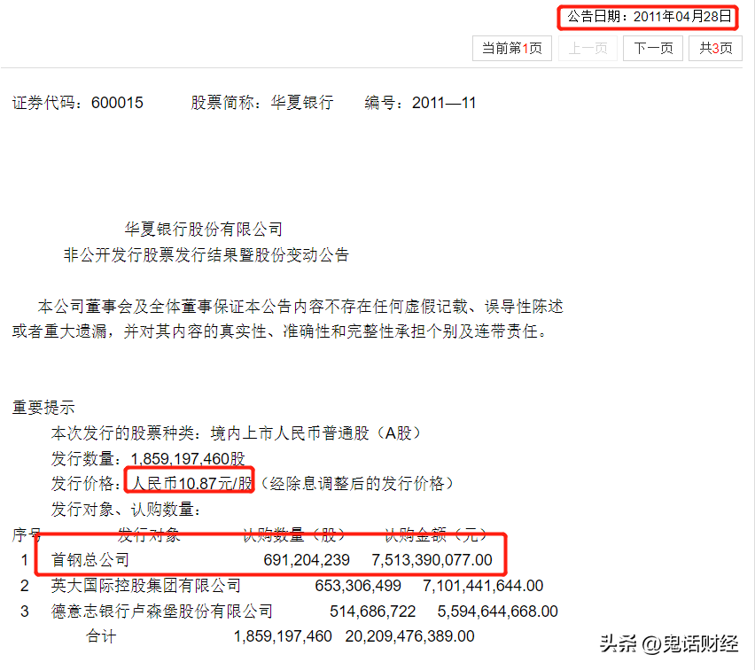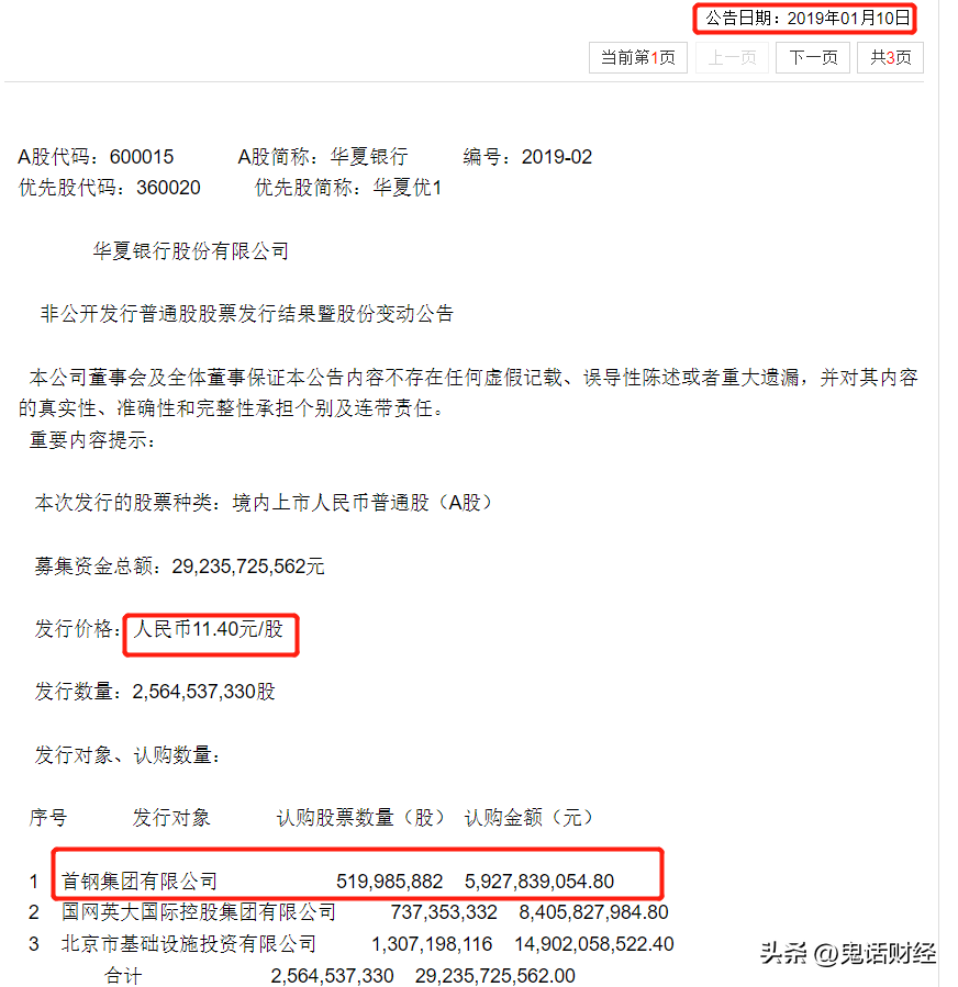 #8月财经新势力#昨天华夏银行发出公告,该行第一大股东首钢集团有限公司和第四大股东北京市基础设施投资有限公司,拟认购华夏银行非公开发行的A股股票金额分别为50亿元和30亿元。上市公司大股东参与定增并没有什么特殊的,因为确实太常见了。不常见的是这次定增的价格为15.16元,公告发出日8月9日股票的收盘价只有5.11元,定增价格几乎是市场价格的3倍!