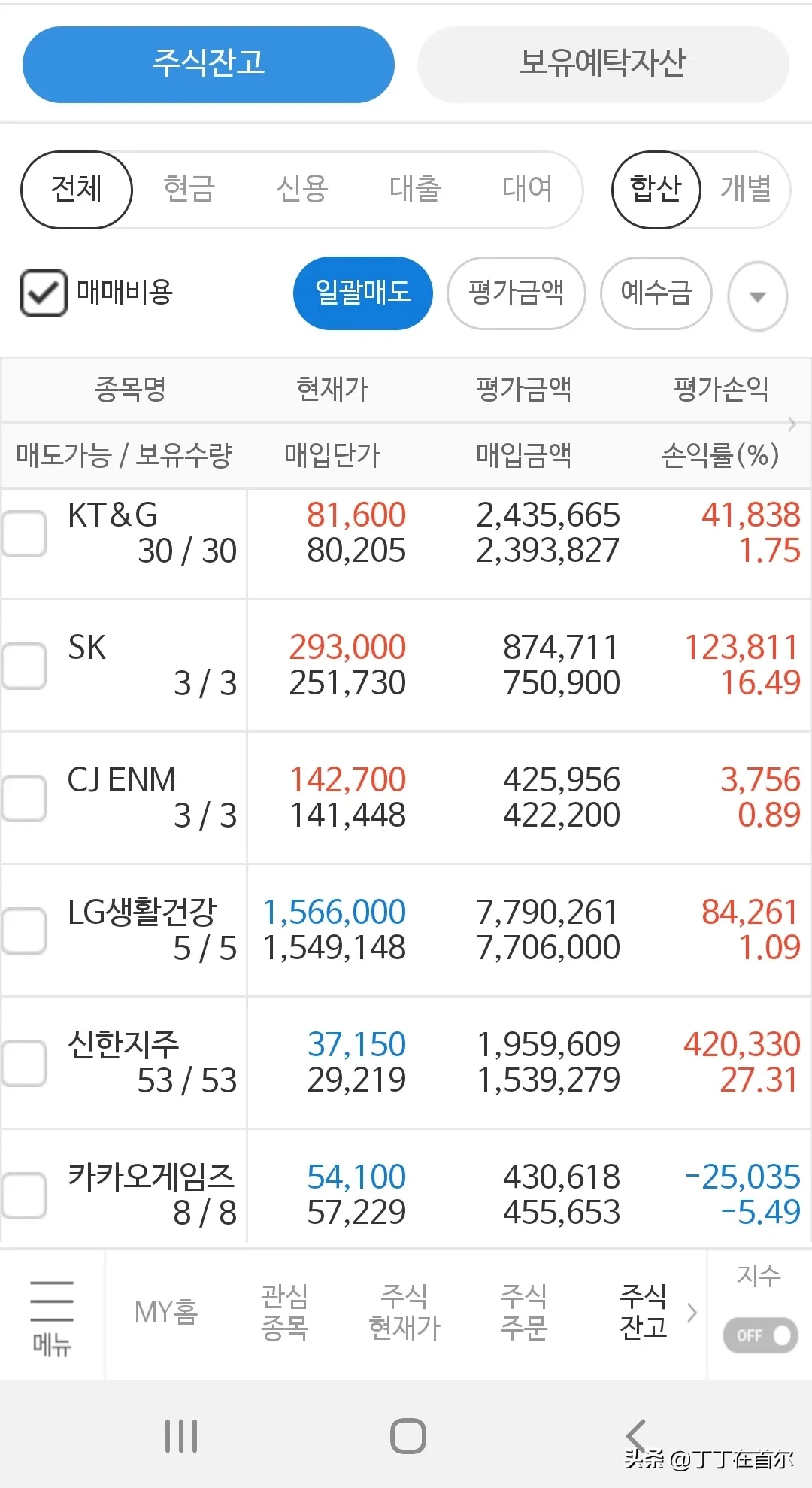 刚开始步入股市其实是很小心谨慎的,只放了2, 3百韩币左右开始,只投了韩股,而且一入场就遇到连续熔断,买的都是些济州航空,CJ财团等股,账号亏幅最大达到负的-56%多印象中,直接拦腰砍半……那个时候也真正开始对股市有了敬畏之心,开始很努力的自学投资。