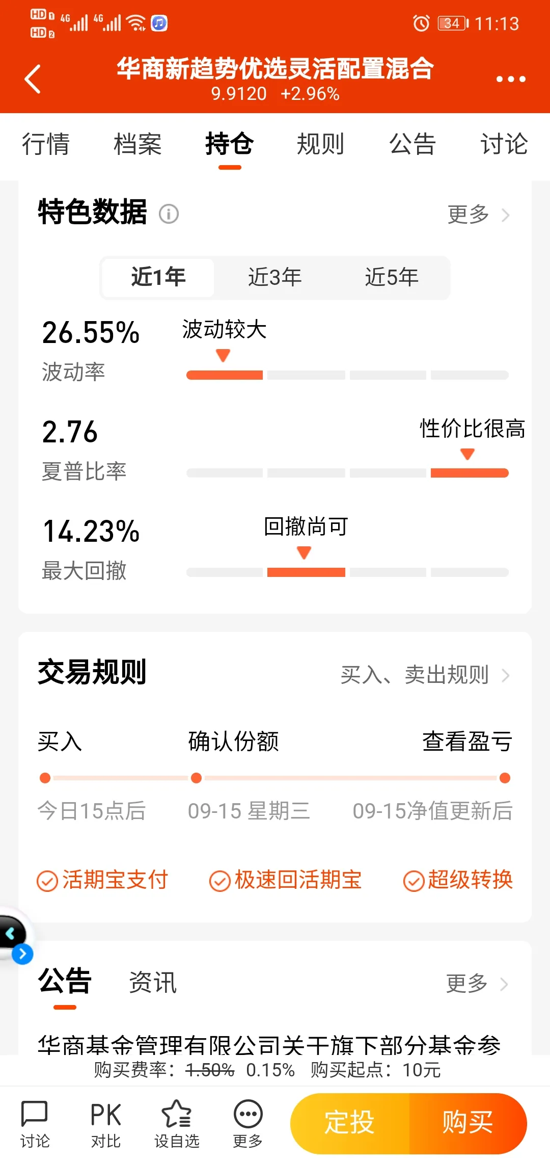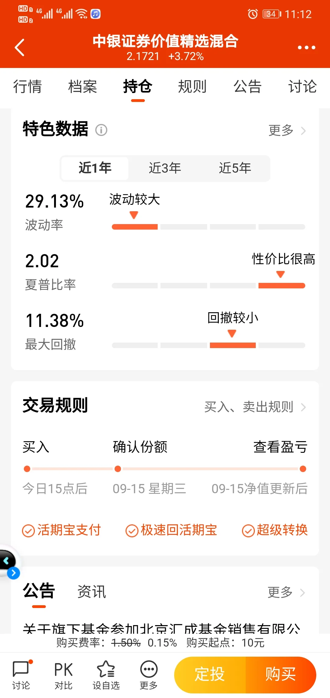 还是那句话,我选基金不看名气,不看规模,只看实打实的表现,你的表现能够打动我,我就无条件的相信并支持你。如果你只是想浑水摸鱼,吃以前的老本,那对不住。我会毫不留情放弃你。