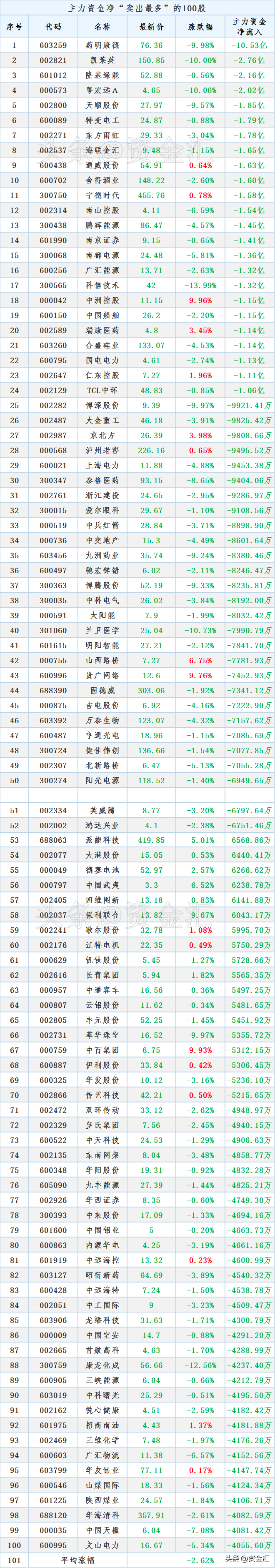 不要追高了!主力资金“大幅卖出”100股,名单来了