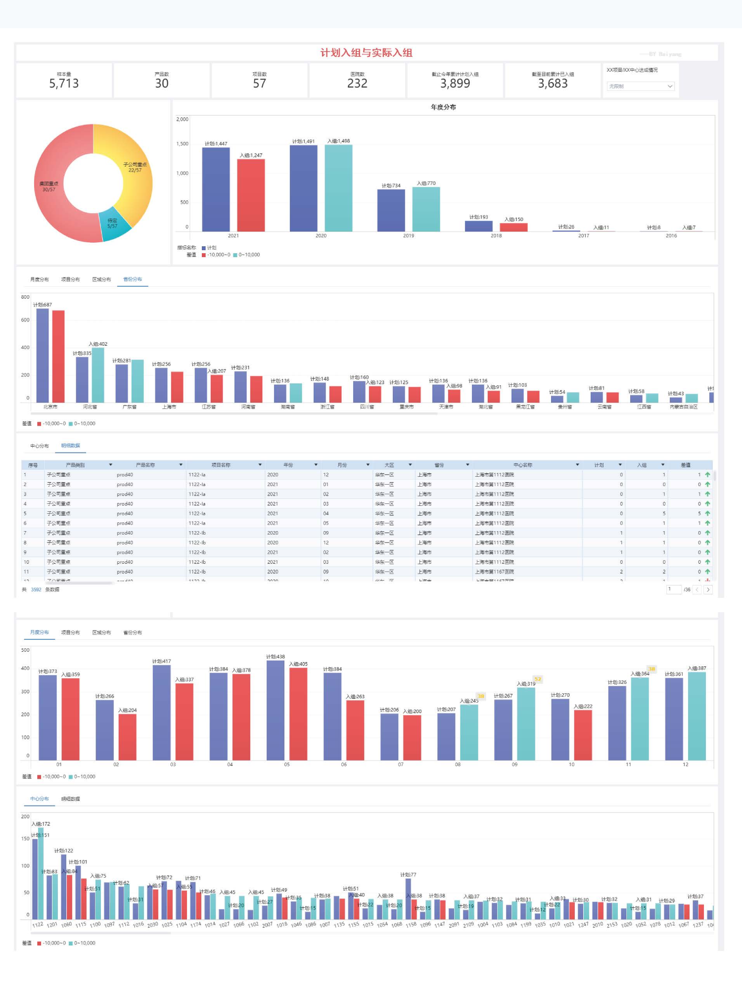 看板为公司临床试验运营管理层提供了更为高效且准确的数据查阅与分析平台,通过BI系统实现了从宏观至微观的数据可视化呈现,帮助运营团队减少一定的工作压力。