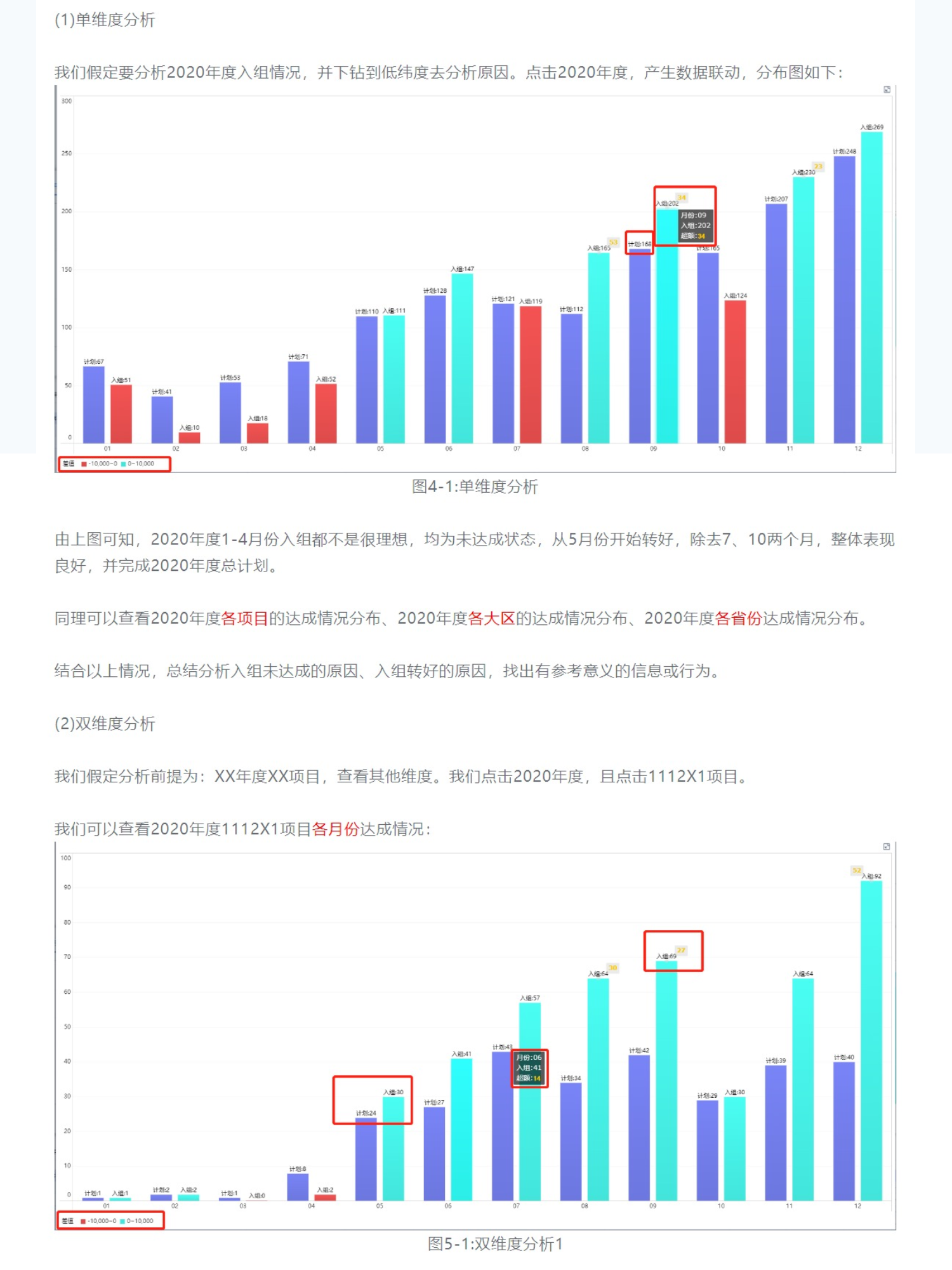 时间维度-月份、项目维度、地理维度(大区/省份)
