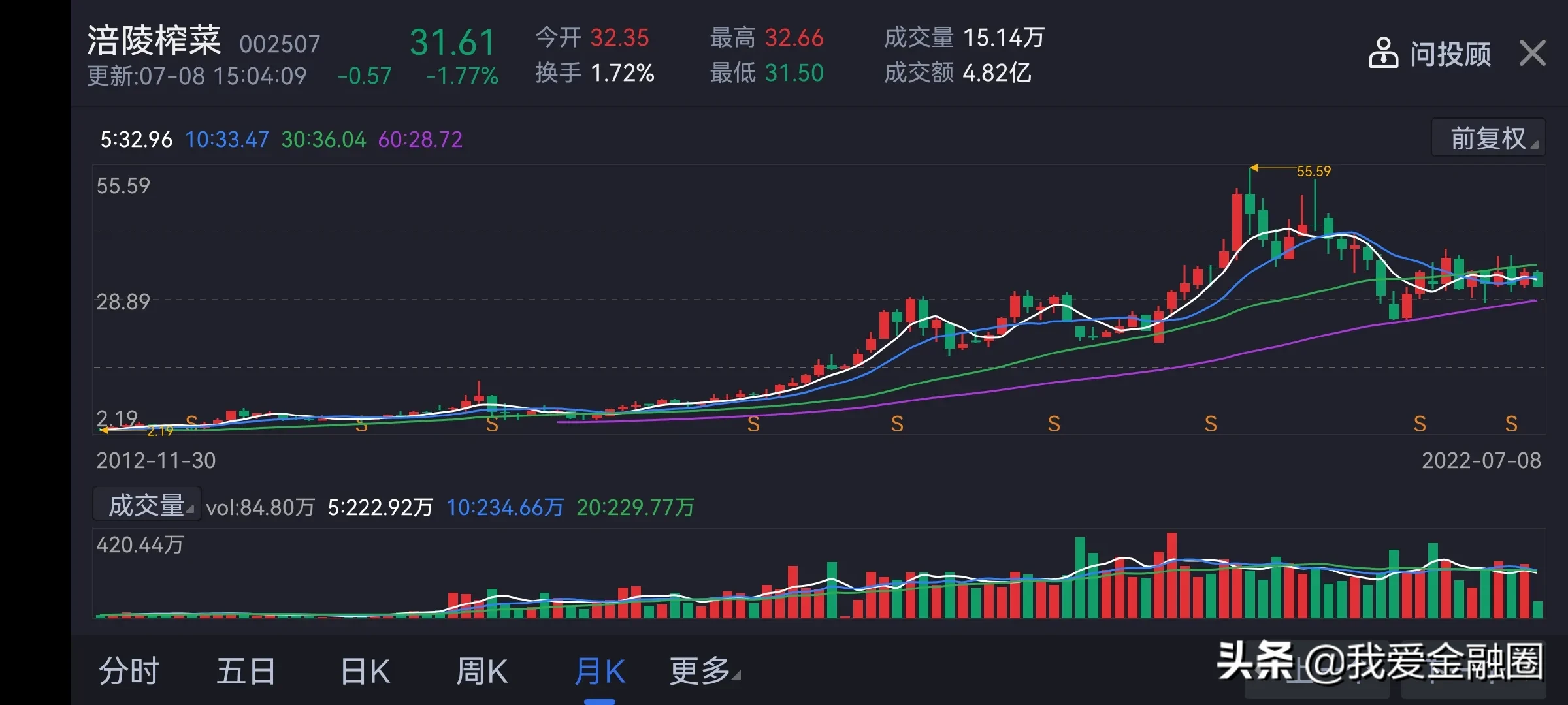 机构持仓达到近三年最高,锁筹呆涨,未来抗通胀主力军。K线趋势典型白马走势,估值合理。未来存在营收扩张,提价潜力,长线好标的。