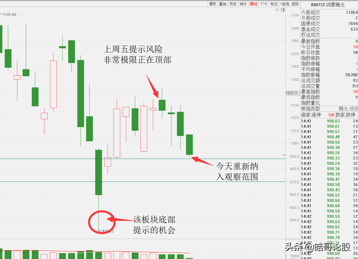 鸿蒙概念及其相关,像操作系统、国产软件、信息安全等板块,短期都有反弹需求。这个板块方向是我们在上周五提示的风险,表示不再观察。如今回调4天,既然再次出现短期反弹需求,那我们就重新观察它。