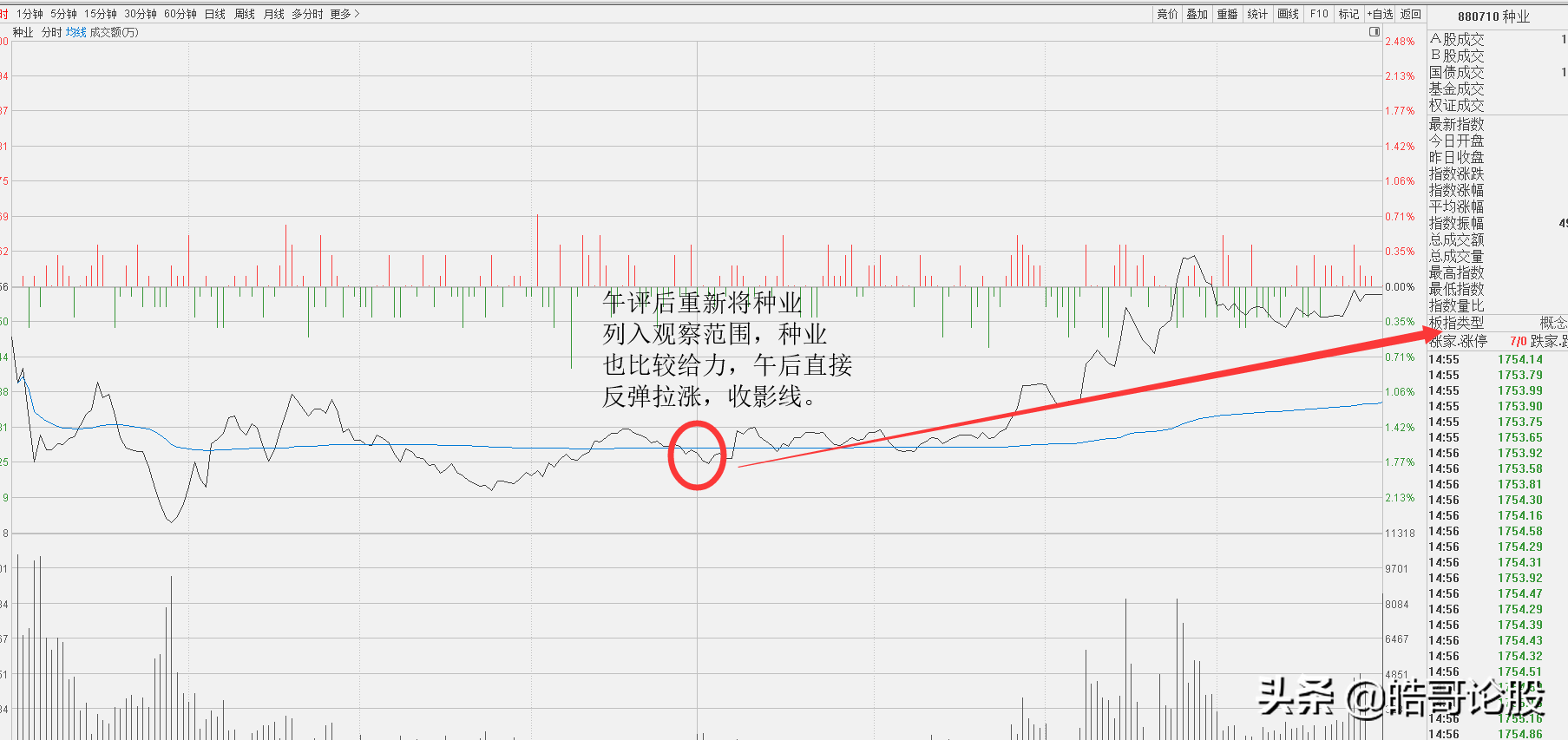 今日午评做出分享,种业板块重新列为观察方向。中午开盘后,种业也非常给力,直接反弹拉升,收出一根长长的下影线。种业板块我一直表示长期看好,之前提示的风险也不过是看到短期有回调而已。结果不用说,自然是回调下跌的。如今调整完毕,机会自然还会出现。