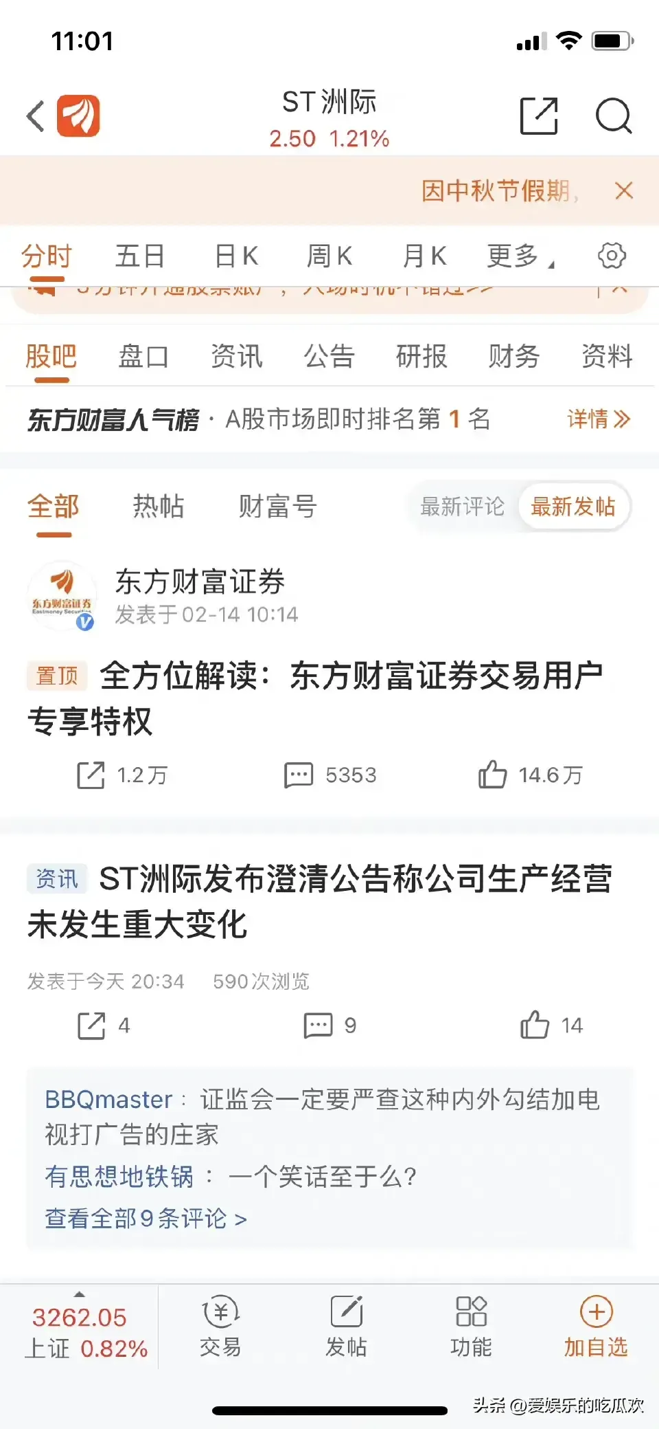 谁也没想到,这600759居然真的是一只股票—-ST洲际,它并不是随便的一个数字,网友们开始研究这支股票,9月12日当天,ST洲际在股吧热股傍从105名一跃而升,直接冲到了第一名,9月13日开盘,ST涨停,涨幅5.2%,报2.63元/股。#《脱口秀大会5》第二期有哪些看点#