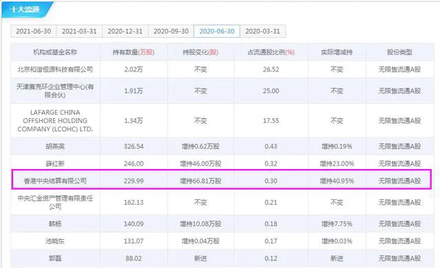 2020年六月的公告看(图四):香港中央结算公司却增持,继续高卖低买,做T拉低成本!牛散加仓!