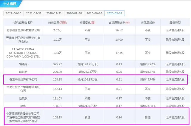 2020年3月(图七)香港中央结算继续增持!薛红新和胡艳英持仓不动!