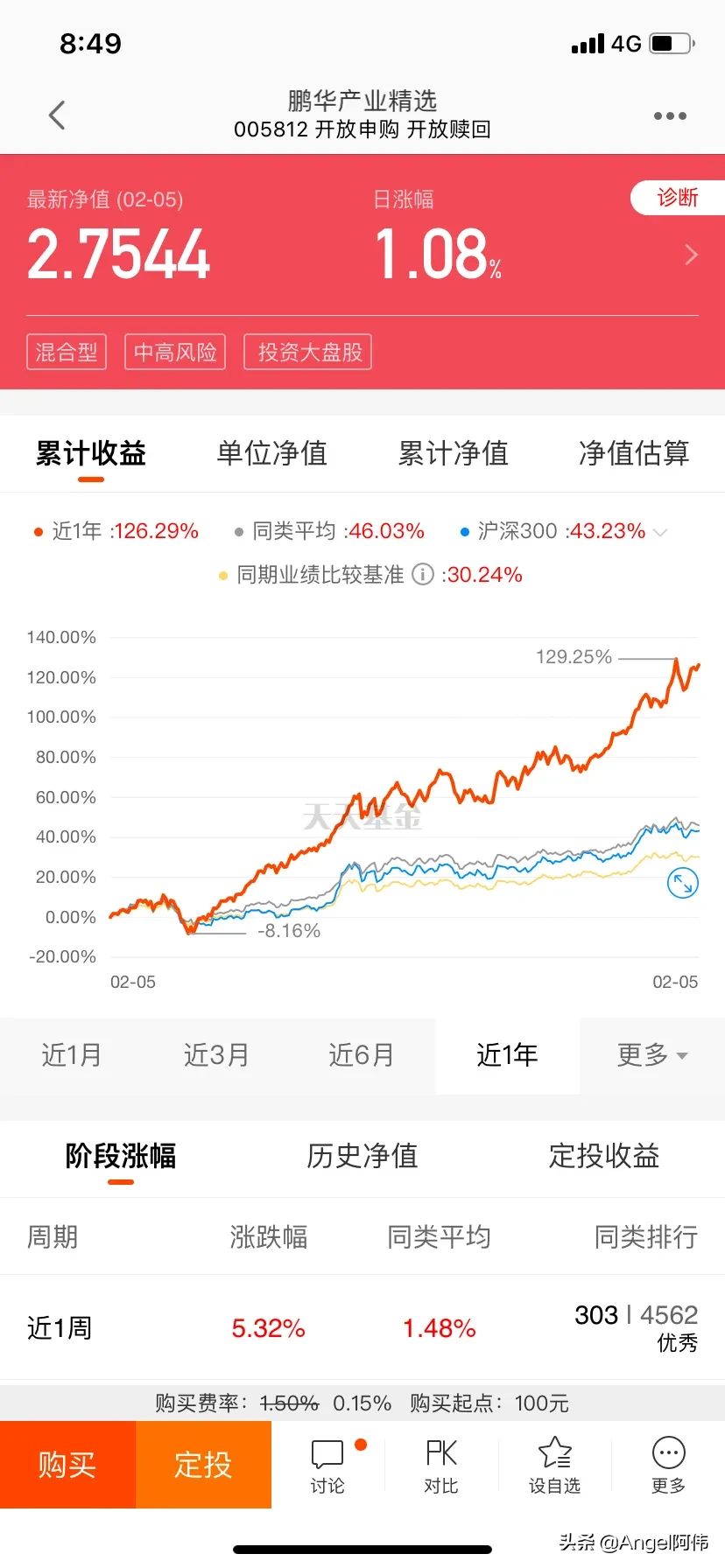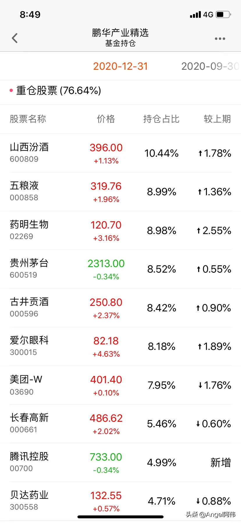 3.鹏华产业精选灵活配置混合,代码005812,混合型,中高风险,最新净值2.7544。在持仓,和重仓持股方面,主要以白酒为主,其次医疗医药和其他。其中白酒占比36.37%,医疗医药占比27.33%,其他混合占比12.94%。该基金成立时间,2018年05月09日,净资产规模11.24亿元。基金经理,王宗合,管理该基金时间,从成立以来至今,一把手管理。任期回报174.22%,近一年涨跌幅+126.29%。另外,该基金在持仓方面,还混合三支港股,分别为“药明生物”“美团-W”和“腾讯控股”。