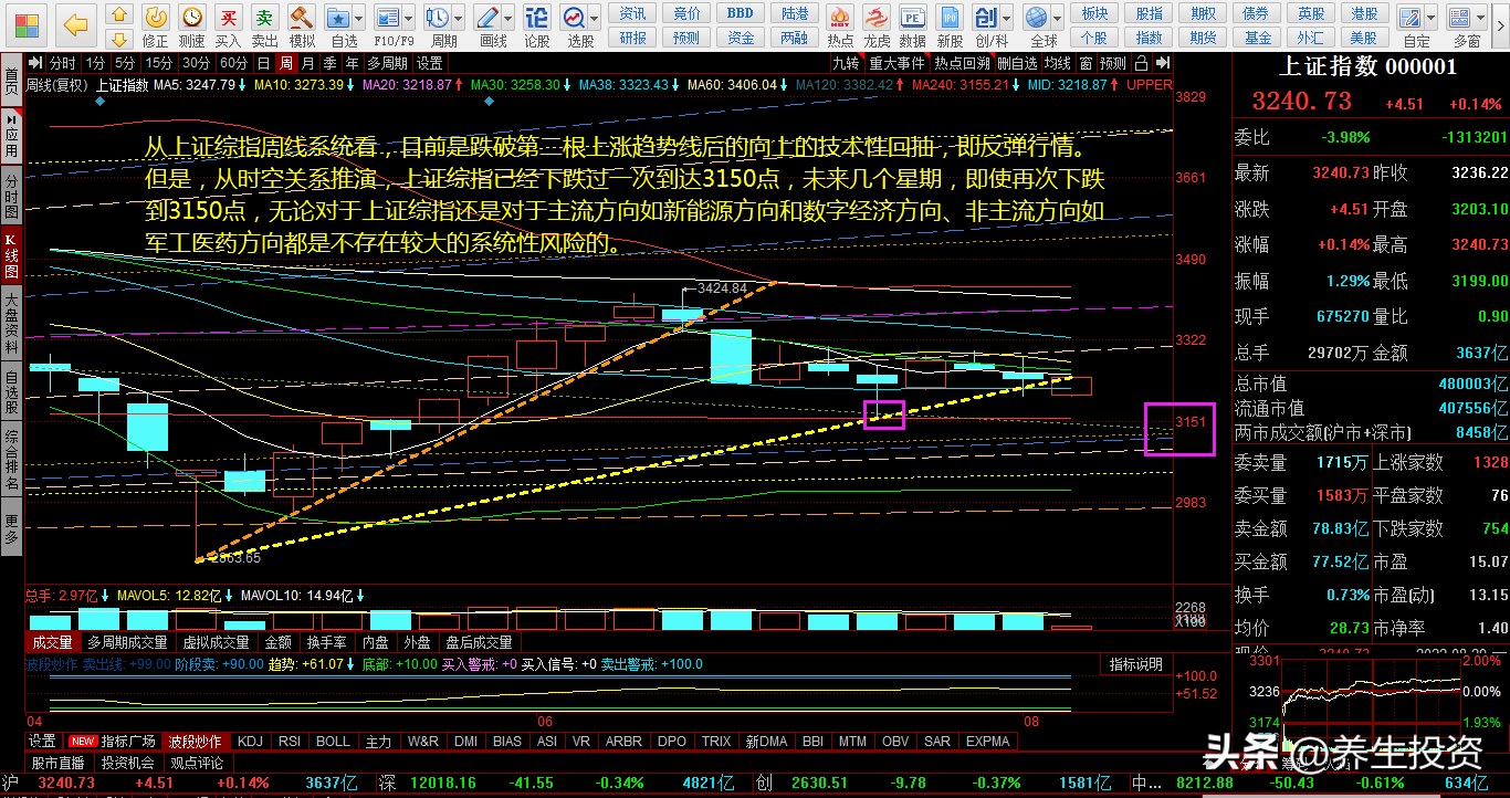 “预判在22.8.23或前后上证综指将会下探3235点左右。”