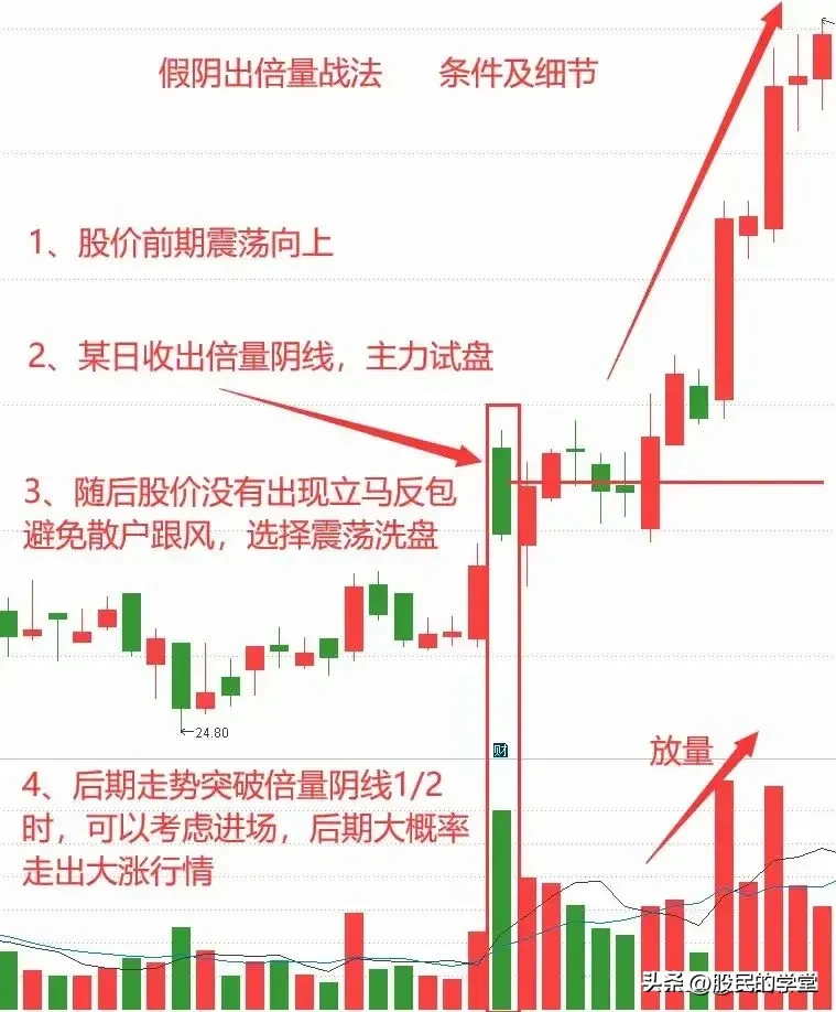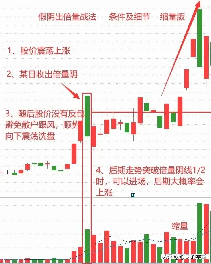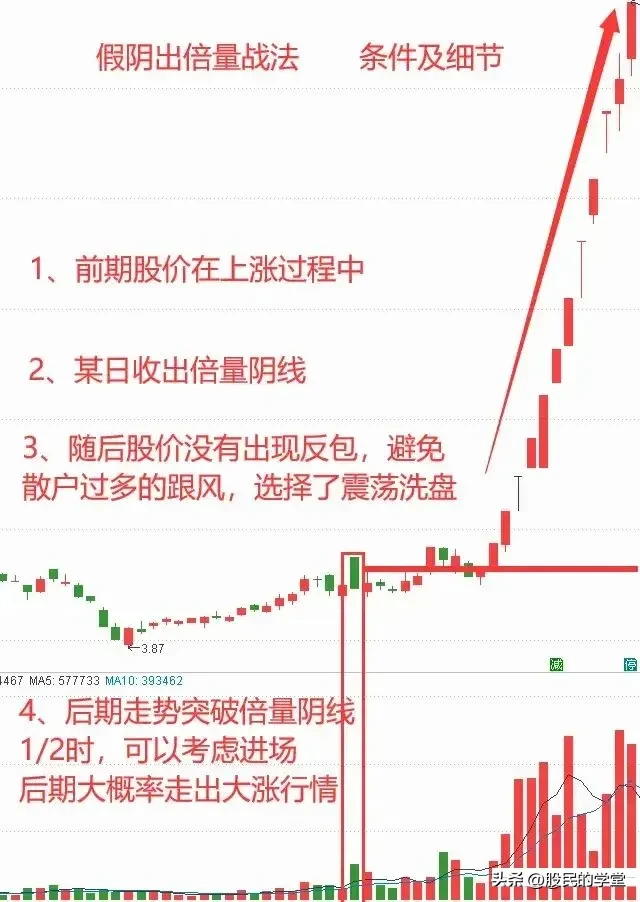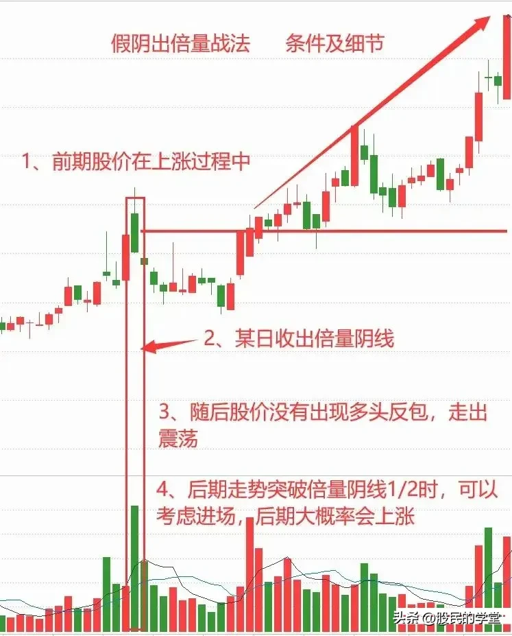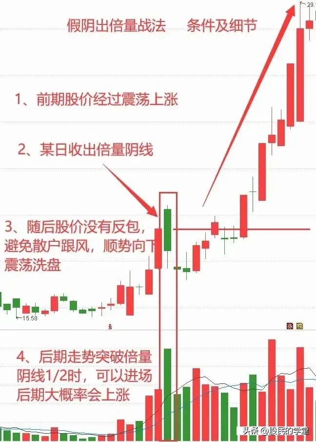 在股市里面会有很多特殊的走势,让投资者恐慌,高开低走就是其中一种,若是高开低走最后形成大阴线的话,会有很多人着急卖股票,下面给大家分享一种短线战法“阴线倍量”也叫“高开放量中大阴”,建议收藏转发!
