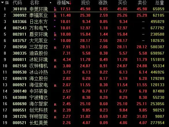 申菱环境涨超18%,泰福泵业涨超10%,日出东方、万和电气、盾安环境、大元泵业涨停,三花智控、迪森股份、冰轮环境等股跟涨。