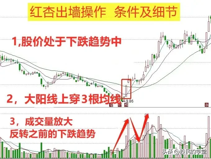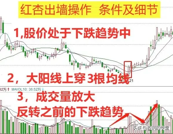 炒股,做短线抓底部反弹行情,对形态和指标的把握很关键,下面分享一种短线战法,结合了形态和指标的运用,叫低位一阳穿三线也叫“红杏出墙“战法,建议收藏转发!”