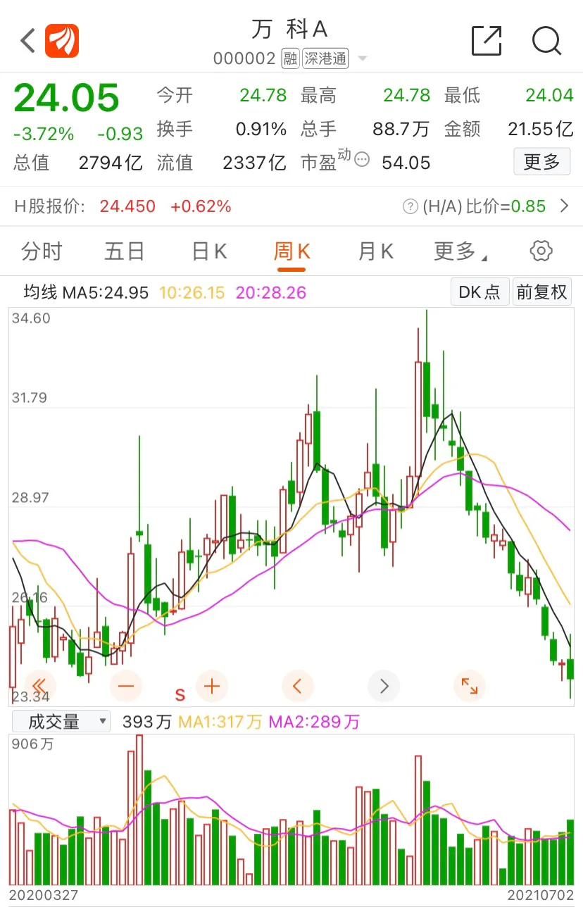 1,万科A,市值2794亿人民币