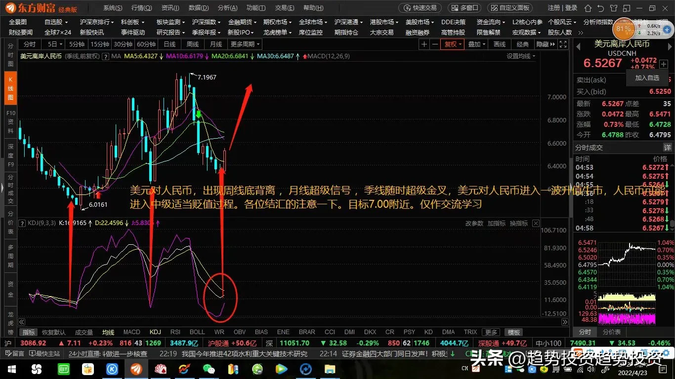 人民币汇率突破7.23,技术图形提前反应一切主力做盘信息!