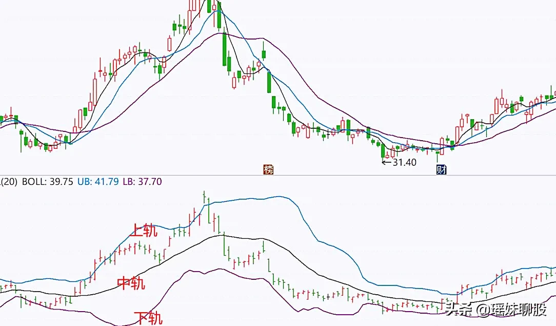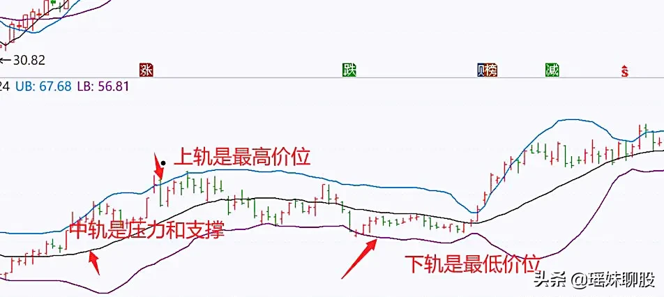 布林线是由上轨、中轨、下轨三条线组成,上轨是股价的压力线,中轨是股价的支撑线,下轨是股价的平均线。