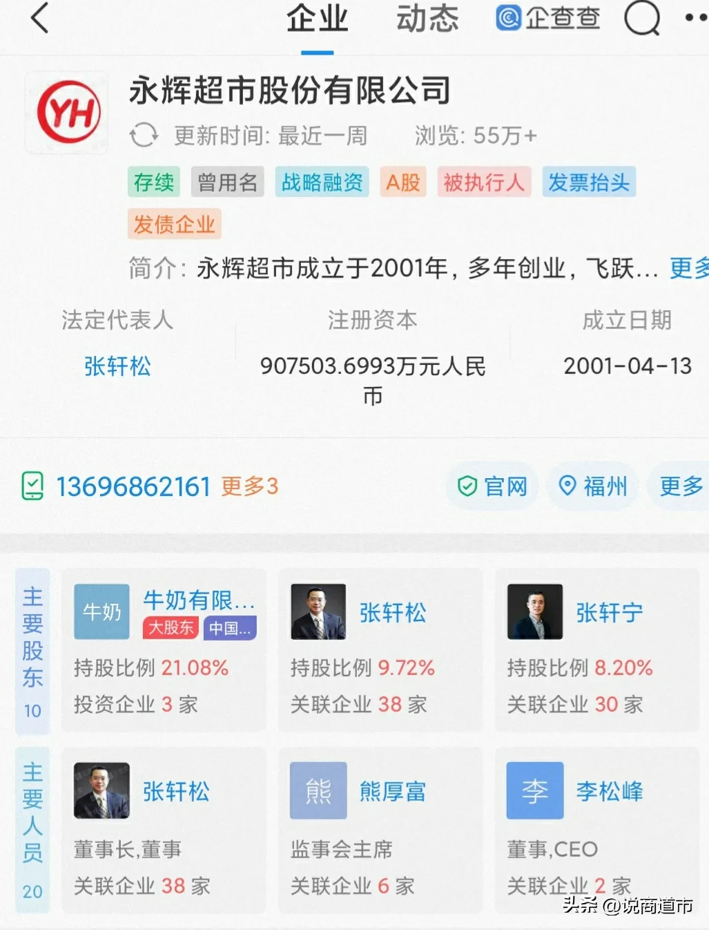企查查APP显示,永辉超市大股东为牛奶有限公司,目前持股比例21.08%,张轩松、张轩宁兄弟为该公司第二大股东,持股比例减至17.92%,而京东减持至8.11%,腾讯增持至5.27%。