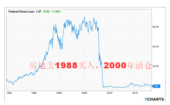 房地美,在1988年买入之时,巴菲特觉得是极为便宜的,到了2000年,房地美如日中天时,巴菲特感觉到他们的管理层太过于追求收益率,喜欢做一些风险高又与主业无关的投资,于是他进行了清仓,基本算是在最高点清仓了。这也算巴菲特极少的精准清仓了,没错,巴菲特很少卖在最高点。