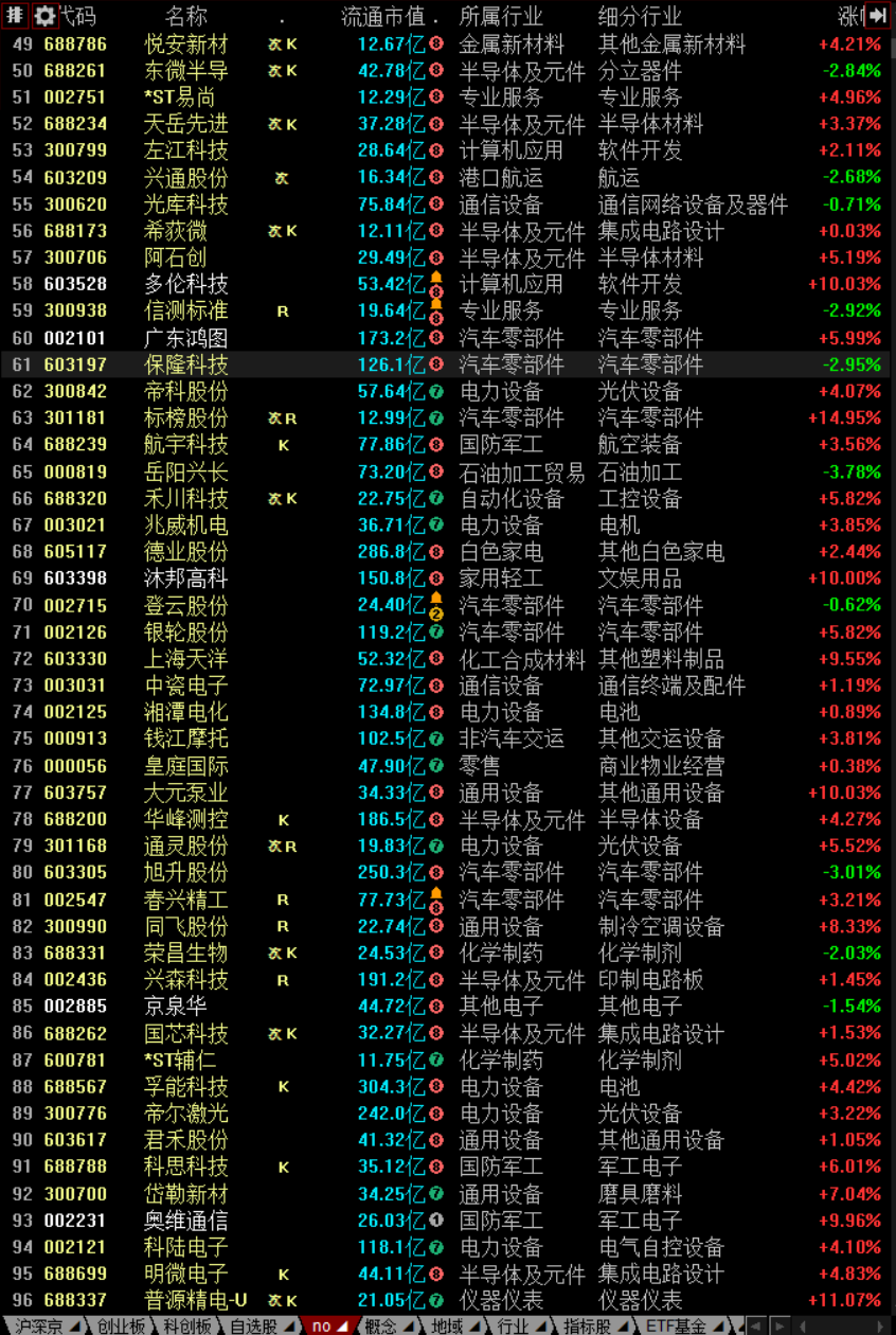 今天从板块上来说汽车零部件板块涨幅很大,松原股份,标榜股份靠前。