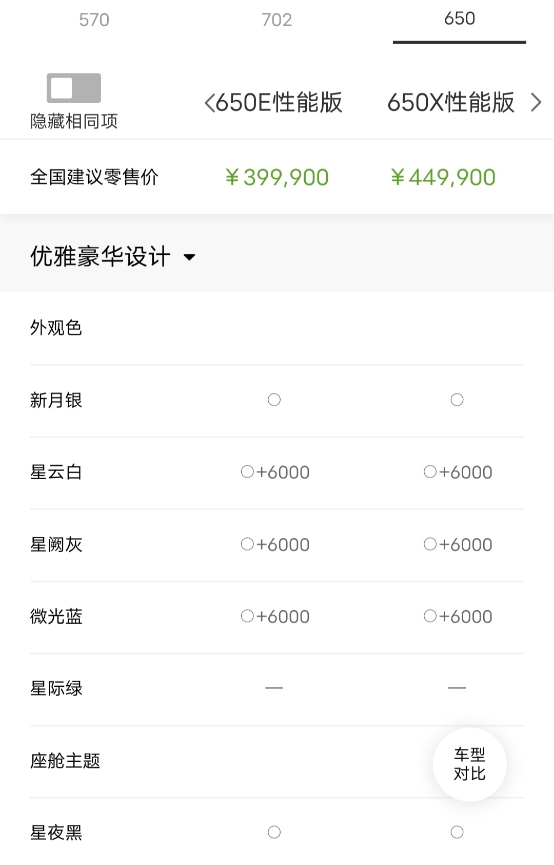 另外的激光雷达以及重点宣传的音响系统和双OrinX芯片,也只出现在售价45万元的顶配车型上,其他车型想要拥有,价值一万不等的各种选装包请了解一下。这么一来的话,小鹏G9的吸引力就大打折扣了。