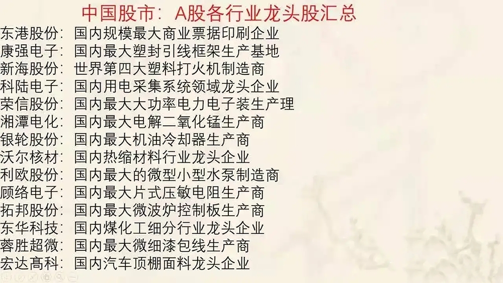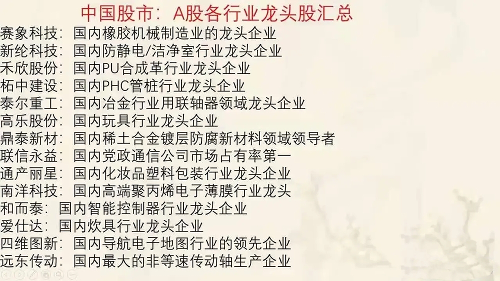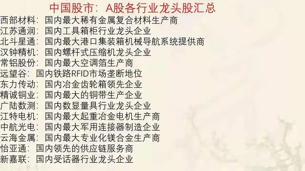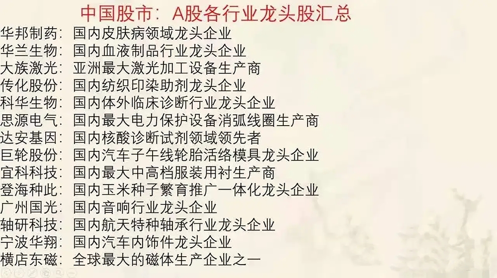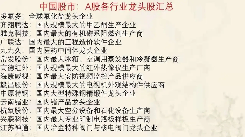 花了2周时间,终于把A股4500家龙头性质的公司整理出来了,擒贼先擒王,只有抓住龙头股,才能在规避风险的同时让自己的投资收益最大化,建议大家一定要收藏保存,反复阅读,相信一定会对你的投资有很大帮助。