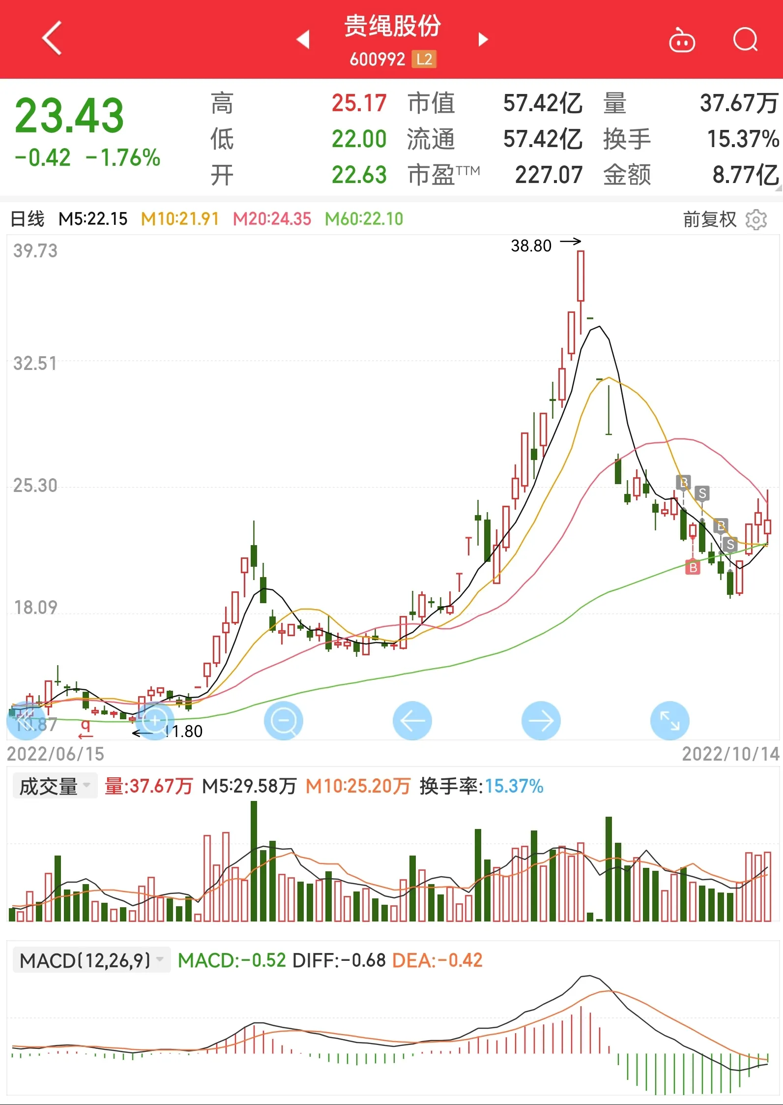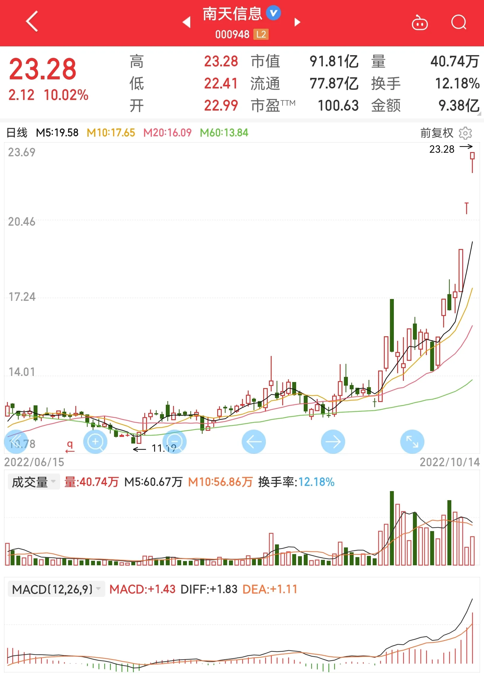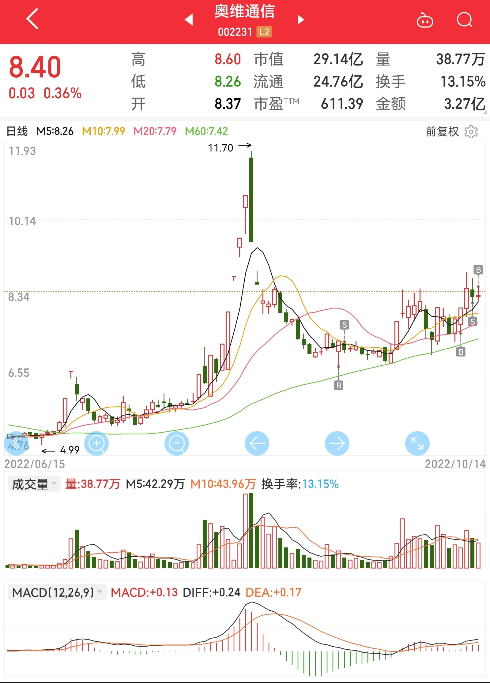 为了奥维,错过了贵绳,错过了南天,但我其实并不后悔,心里还是挺淡然的,等做完这笔再调整状态吧。奥维从形态上讲还是不错的,虽然是军工行业,但也属于是IT设备和计算机应用大类。目前正在重组,在等国防科工局的批复,且其控股股东瑞丽湾处于破产清算中,坊间传闻有国资接手,逻辑上有一定的利好。不过我还是过于相信主控了,周五但凡多往上拉两个点,技术形态就能得到修复,可惜!