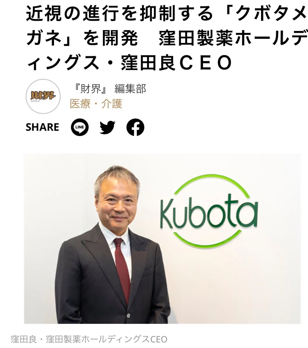 ※美国眼科专业研究所,对21 ~ 32岁的12名近视受试者,使用窪田眼镜的样机台式设备,检测对眼轴的影响进行了临床验证。2020年5月发表与对照眼相比,确认了眼轴长度缩短的效果报告。此外,该公司于同年8月宣布,可穿戴式装置型样机(框架眼镜)也确认了有同样的效果。