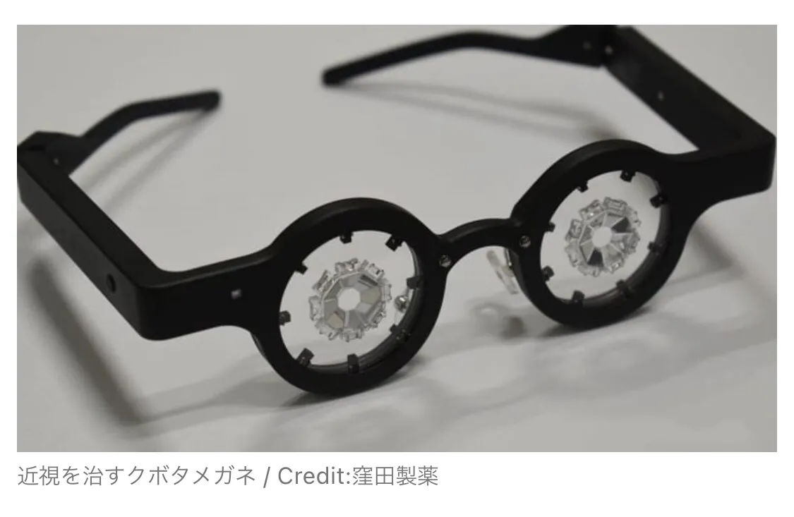 日本窪田制药控股公司开发的具有抑制和改善轴性近视恶化效果的框架式近视眼镜“窪田眼镜”。