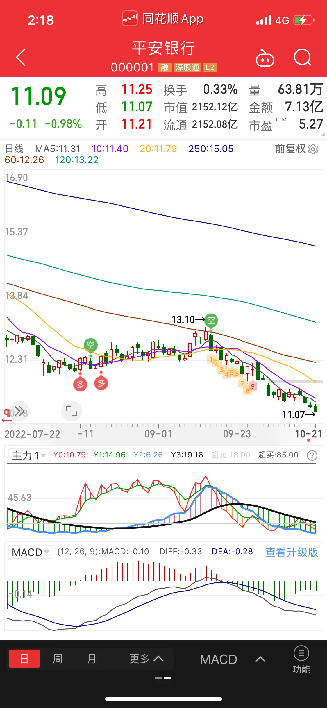 我也很无语。我告诉他,平安银行不用担心,他的成本13不高不低,可以把股票交给时间。