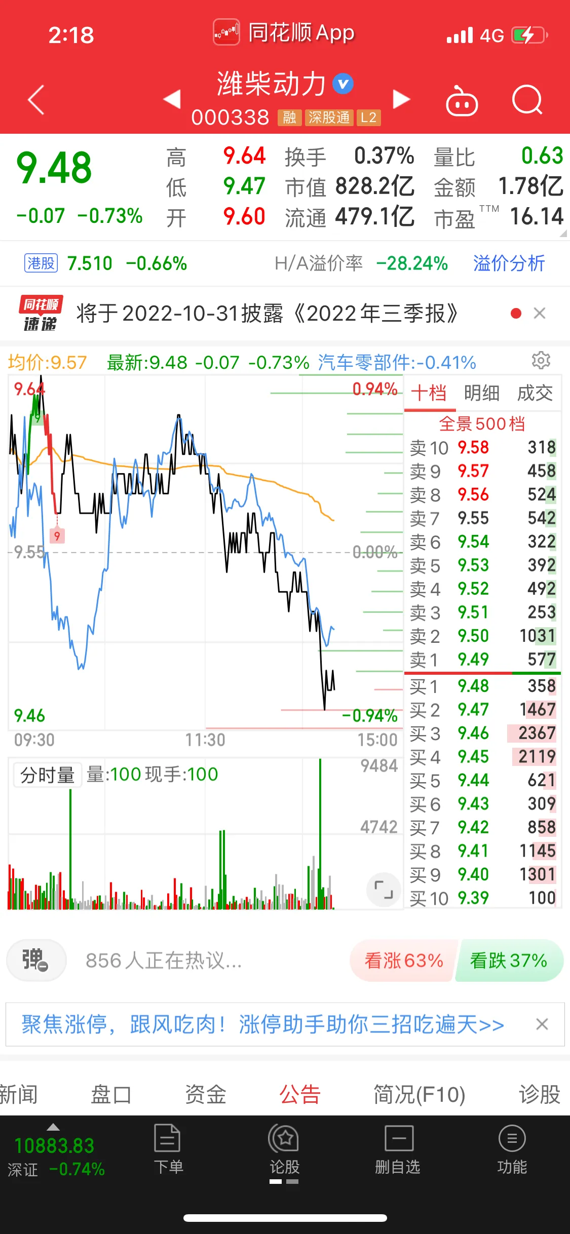 潍柴动力真不好说,短期看不到希望,我只能说现在不要再补仓了,也不要割,也不要做T,这股没活性,振幅和换手率极低,没有空间做T。还是交给时间吧,这种受大环境影响的传统周期股就是这样子,没办法。