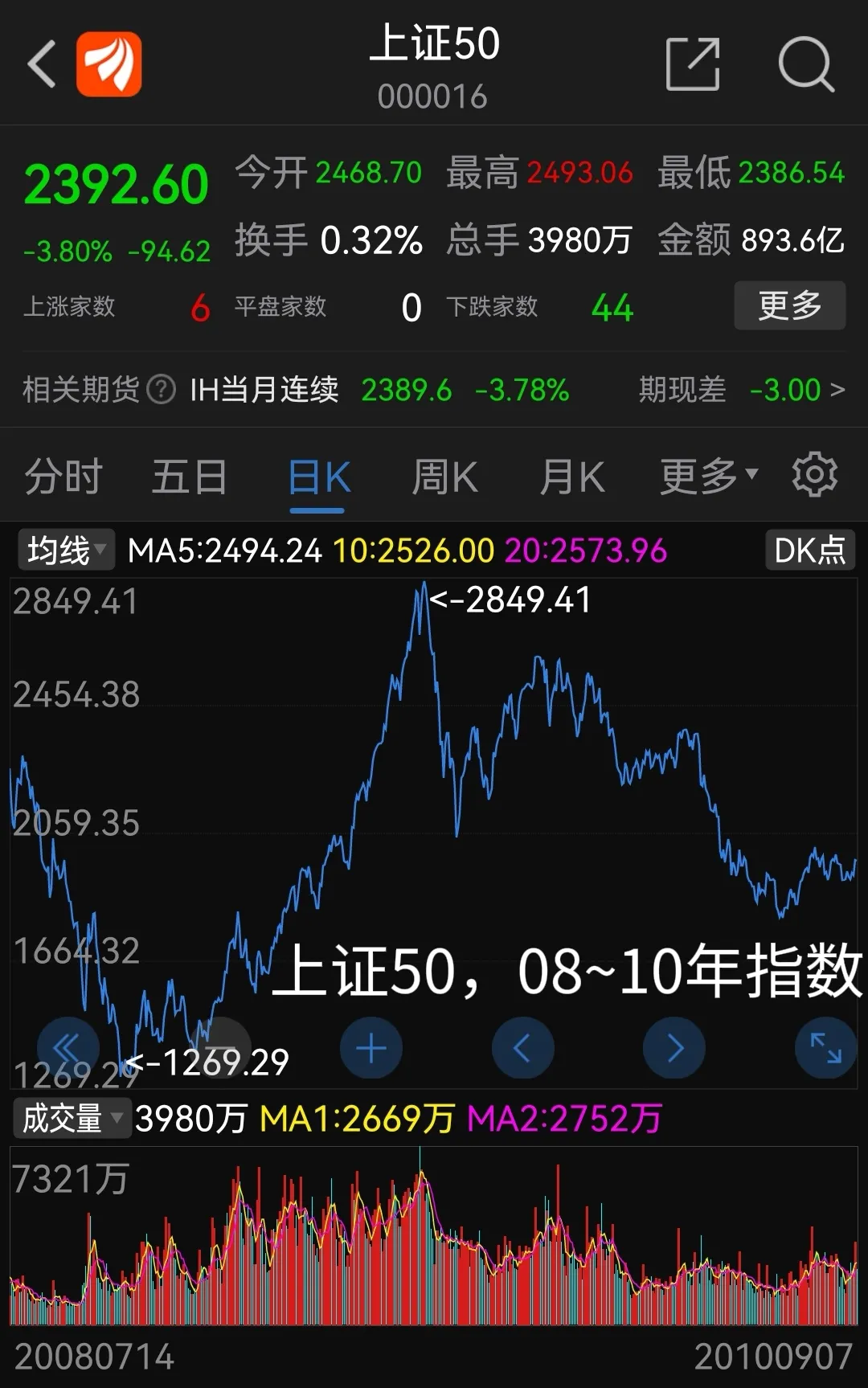 今天大A又下跌了,特别是上证50指数跌3.8%,挺吓人的。究其原因,主要有三个方面。一是扫荡式割大A韭菜的聪明钱北向资金带头跑路,吓得长期自拉自唱,盘踞于茅台、汾酒、片仔癀这些票中的抱团机构们软骨病发作,作鸟兽散。二是在港股上市的金融股,由于港股的连续下跌而迭创新低,A+H股的牵扯作用,带动大A的金融股下跌。三是与基建相关的票,毫无作为,基建央企、工程机械等无厘头式下跌。