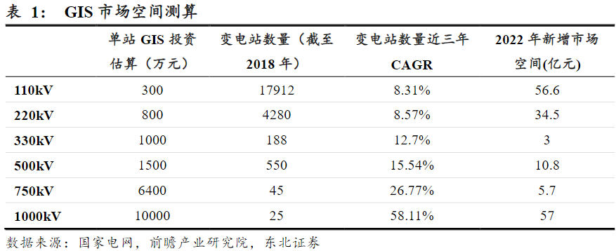 公司的GIS(气体绝缘开关设备)有望成为公司业务重要增长极,2022年较2021年新增110kV-1000kV等级变电站数量分别为1889座、432座、30座、72座、9座、57座。预计2022年新增GIS需求约为167亿元。