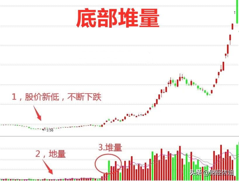 底部堆量这个形态的逻辑比较简单,指一只股票经过长时间下跌之后,在底部位置,股价开始反弹,伴随连续小阳线的堆量,通常是主力筹码开始大幅流入,行情即将反转的征兆,这个时候我们就注意了,一旦出现倍量大阳线,反转之前的节奏,那么大概率是主力开始拉升的现象,当然不是任何位置的堆量都是能走出来的,所以运作的时候需要注意以下细节。